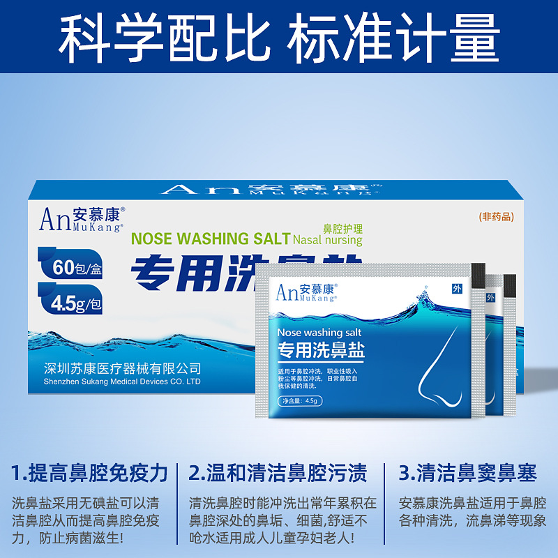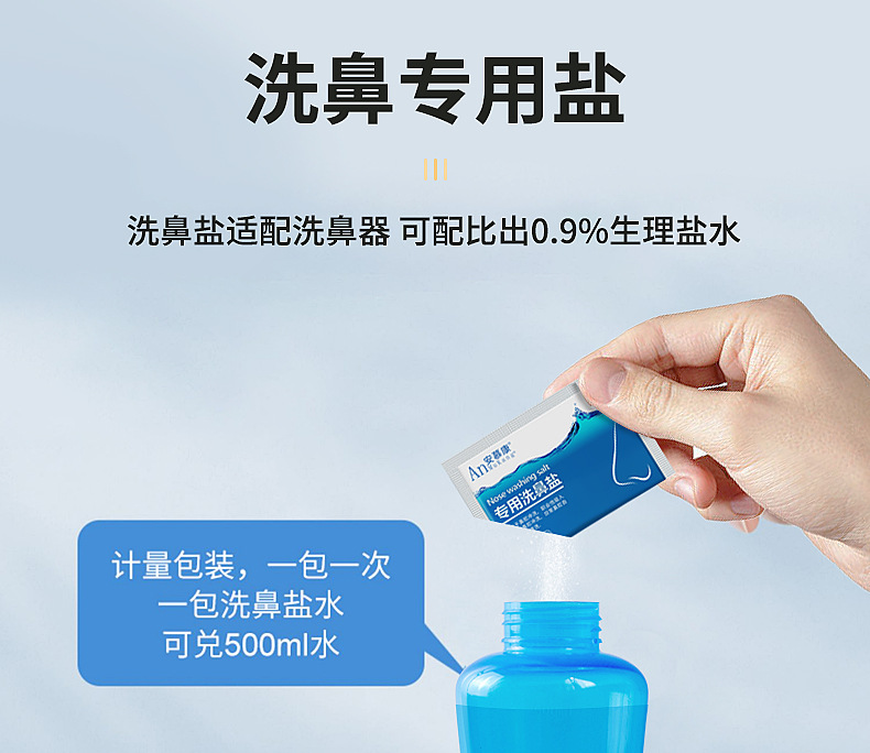 Соль для промывания носа Специальное бытовое устройство для промывания носа для взрослых и детей Солевой мешок Уход за полостью носа Физиологическая морская соленая вода