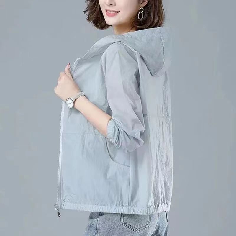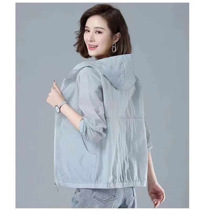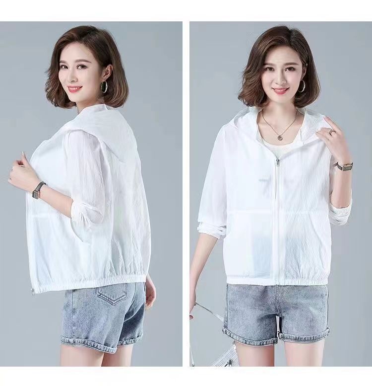 Солнцезащитная одежда для женщин среднего возраста, новая летняя легкая куртка с длинными рукавами, свободная Женская Повседневная Солнцезащитная одежда с капюшоном, рубашка