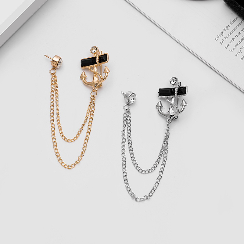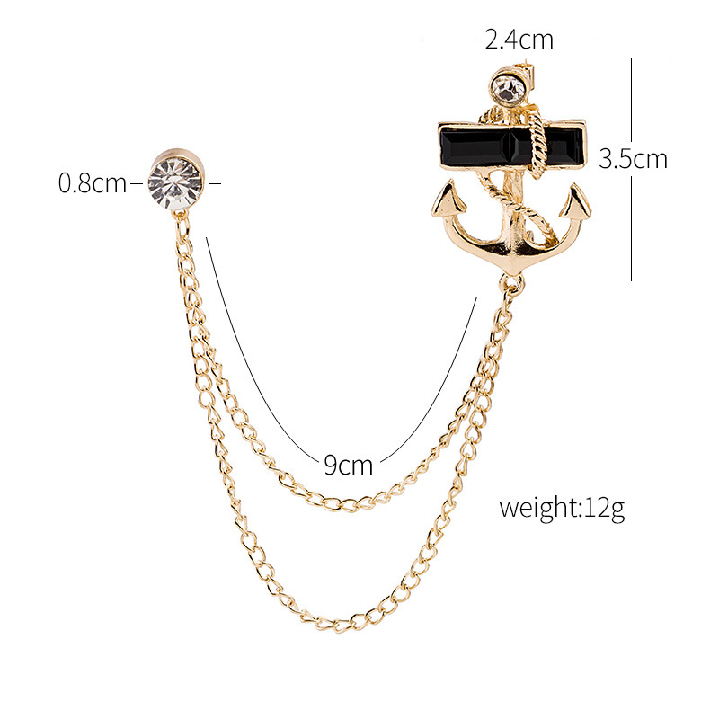 Южная Корея творческая личность сплав якорная цепь брошь с кисточкой модный тренд темно-синий булавка аксессуары с бриллиантами