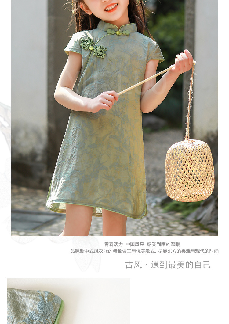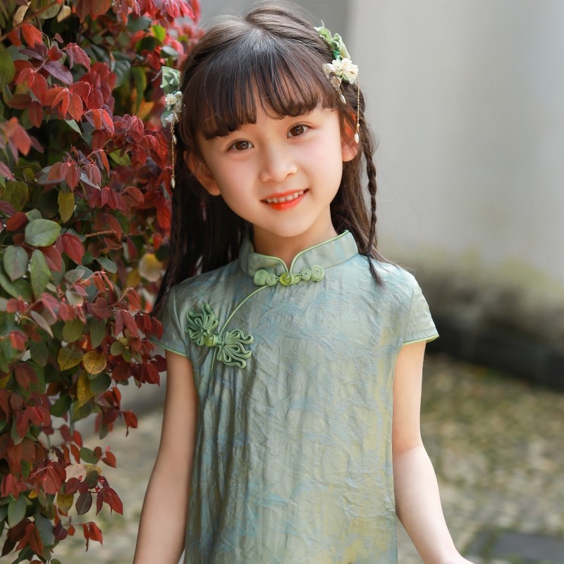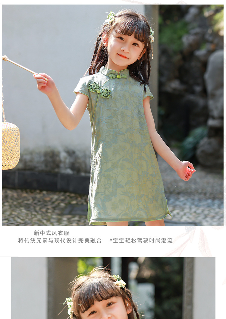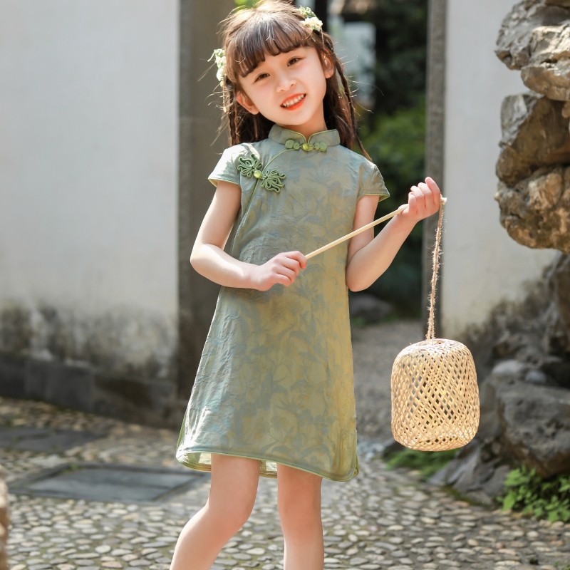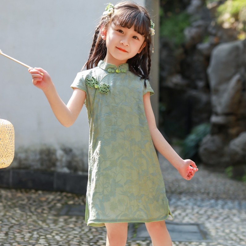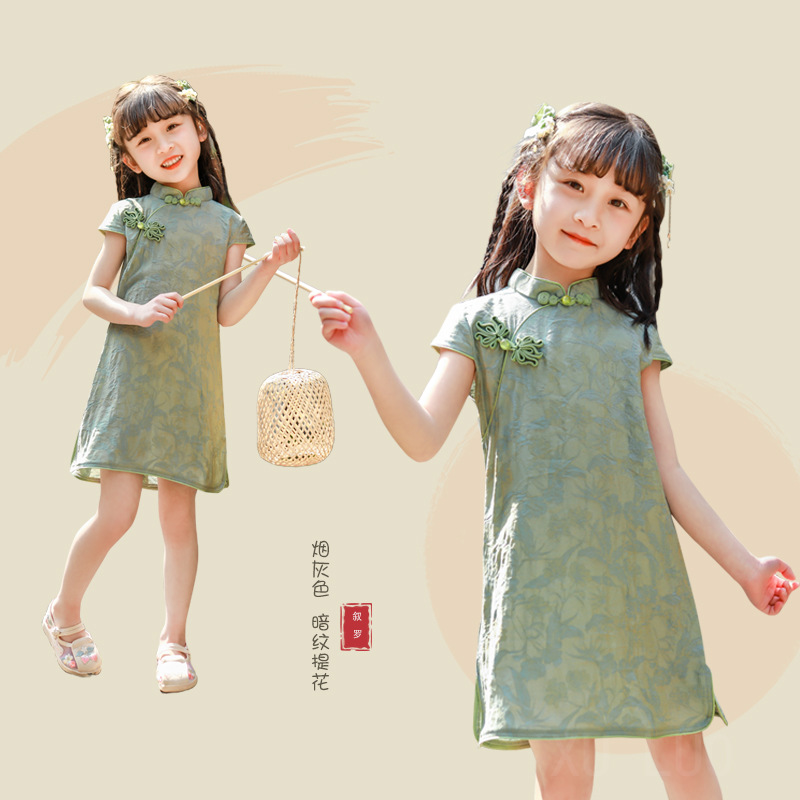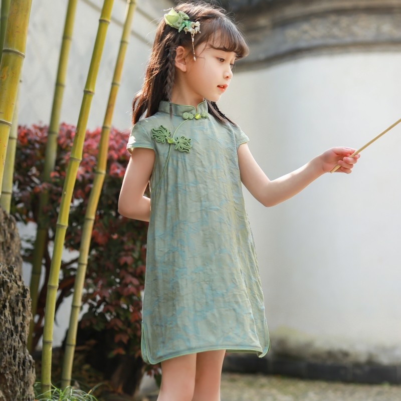 Детское платье в китайском стиле 2026 года, однотонное тонкое милое платье-ципао, стильный костюм Тан для девочек, новая летняя модель.