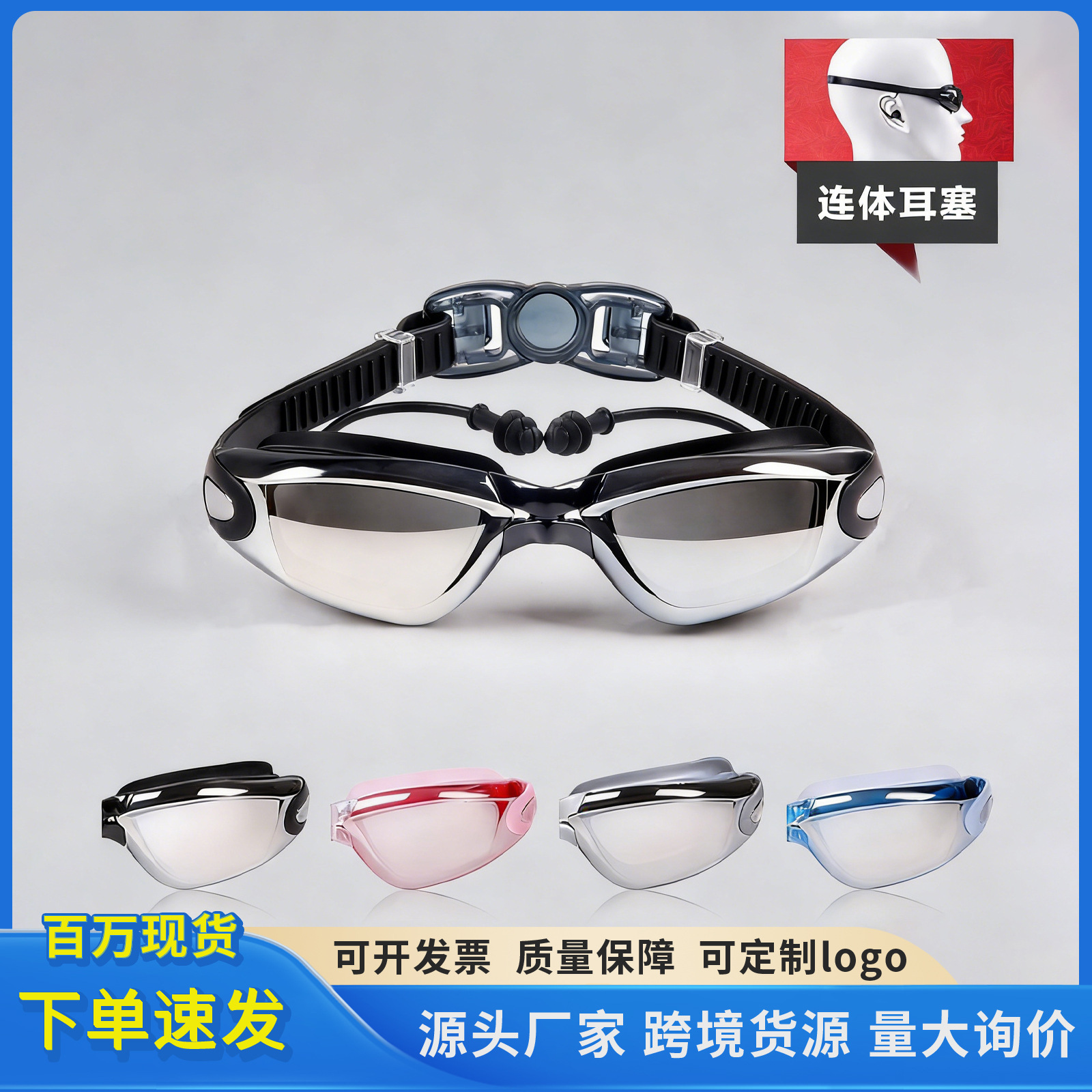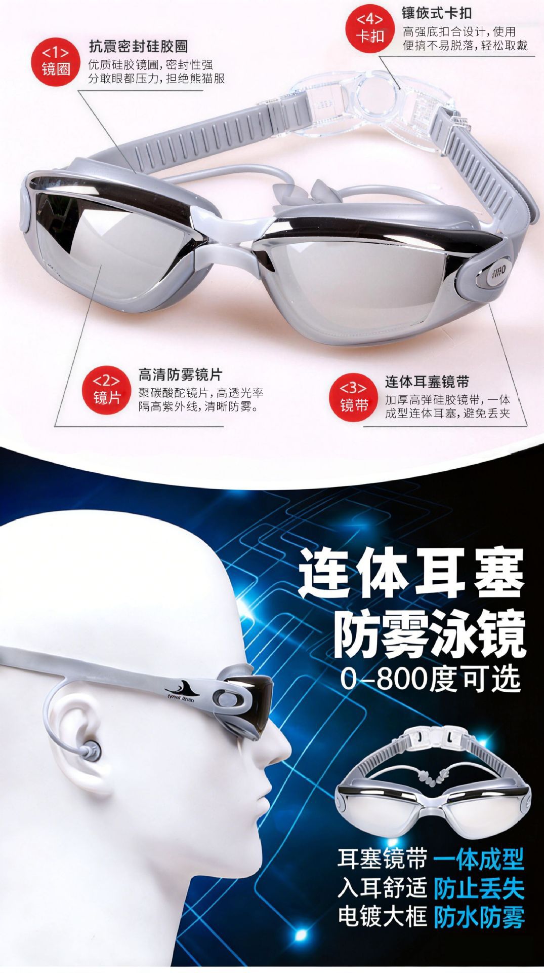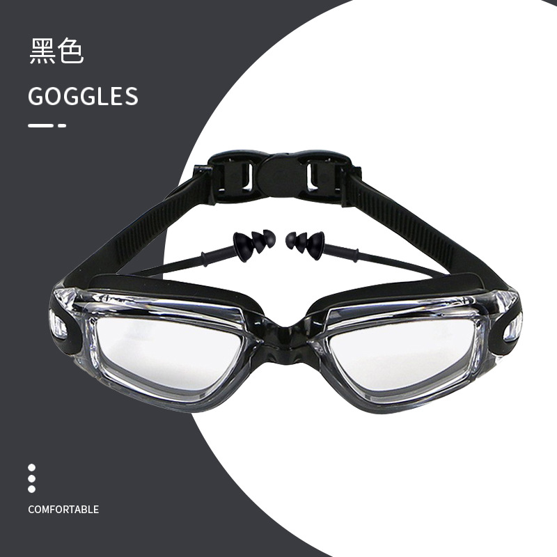Очки для плавания HD Водонепроницаемые затычки для ушей с защитой от запотевания Все-в-одном Плавательные очки Очки для взрослых Ближайший прицел Мужское и женское снаряжение для плавания