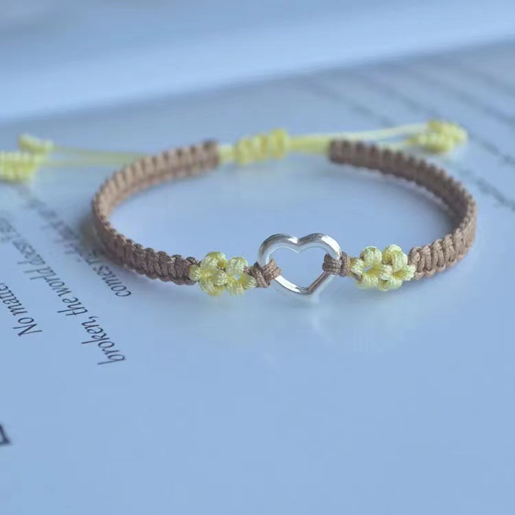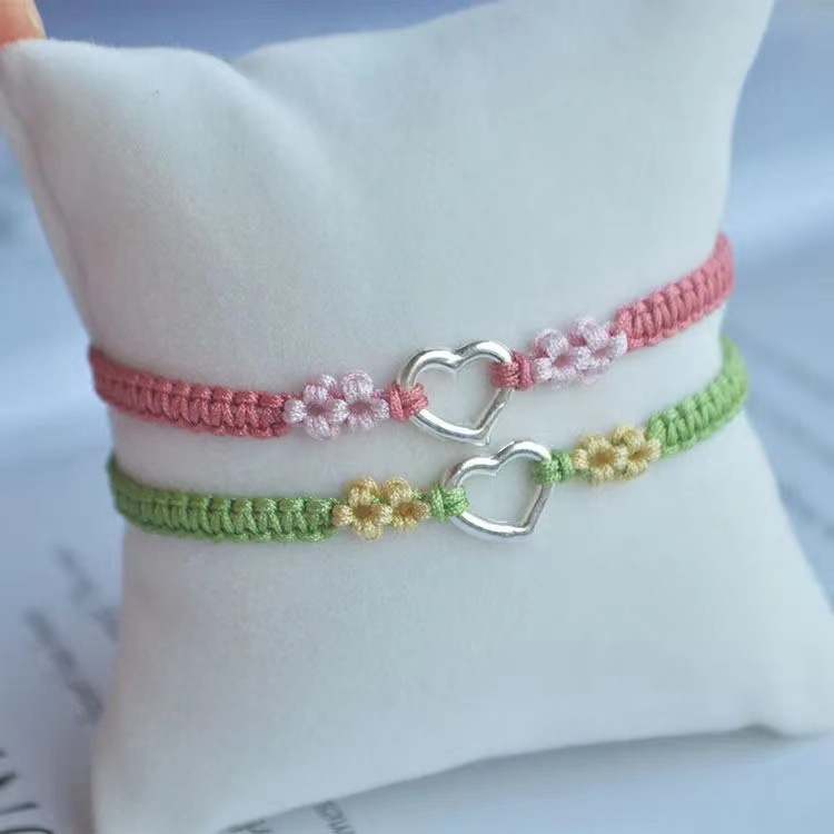Плетеная Ручная Веревка сердце браслет с цветком персика браслет ниша дизайн личность Высокая красота ценность сладкий браслет подруги