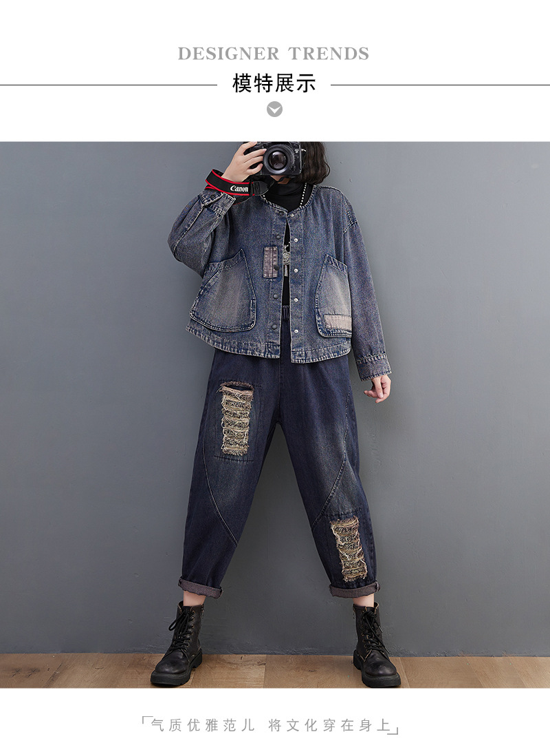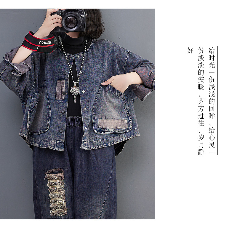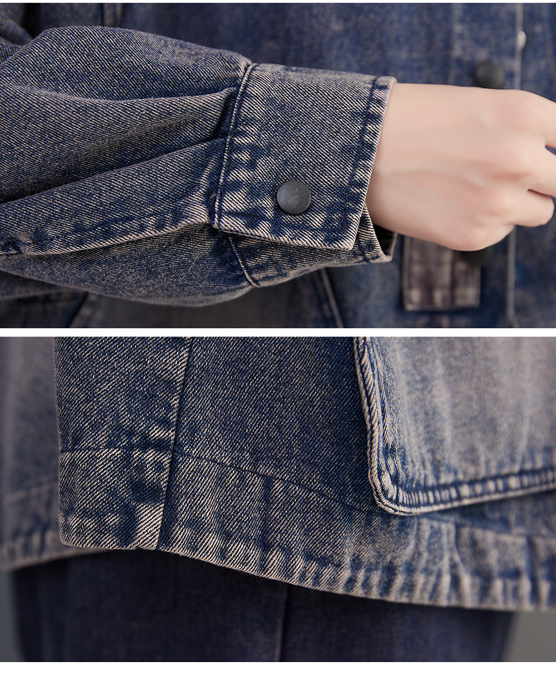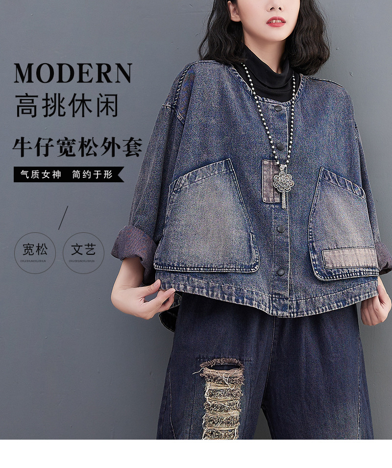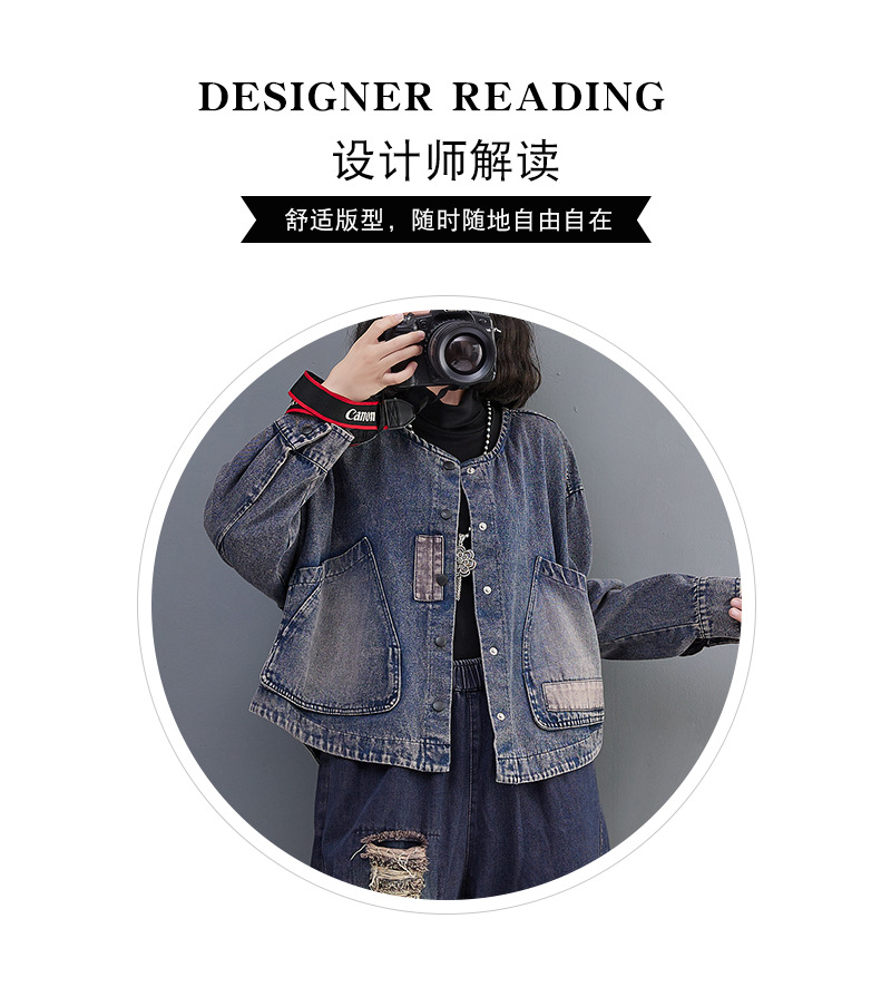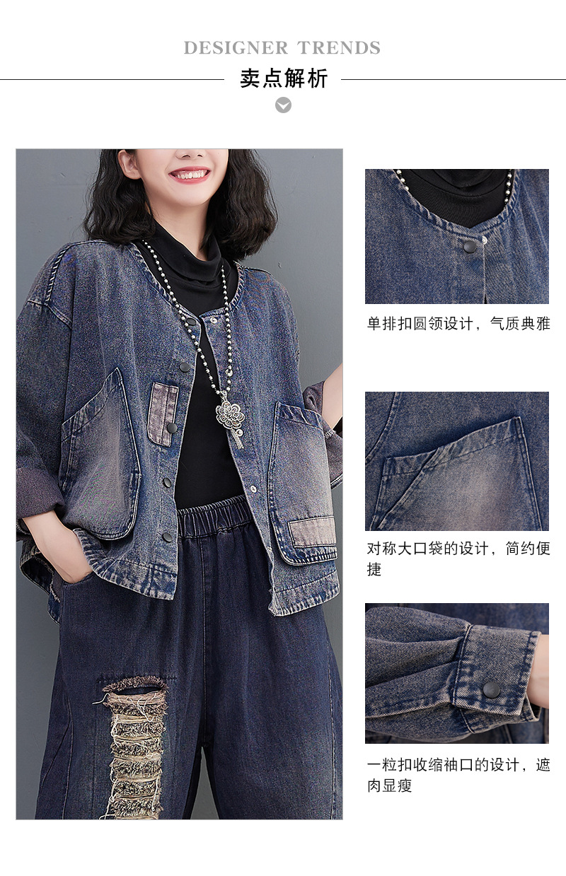 Настоящий выстрел в наличии Джинсовое пальто Женская 2023 осень с длинным рукавом темная ретро свободная Короткая Повседневная Женская одежда с вышивкой