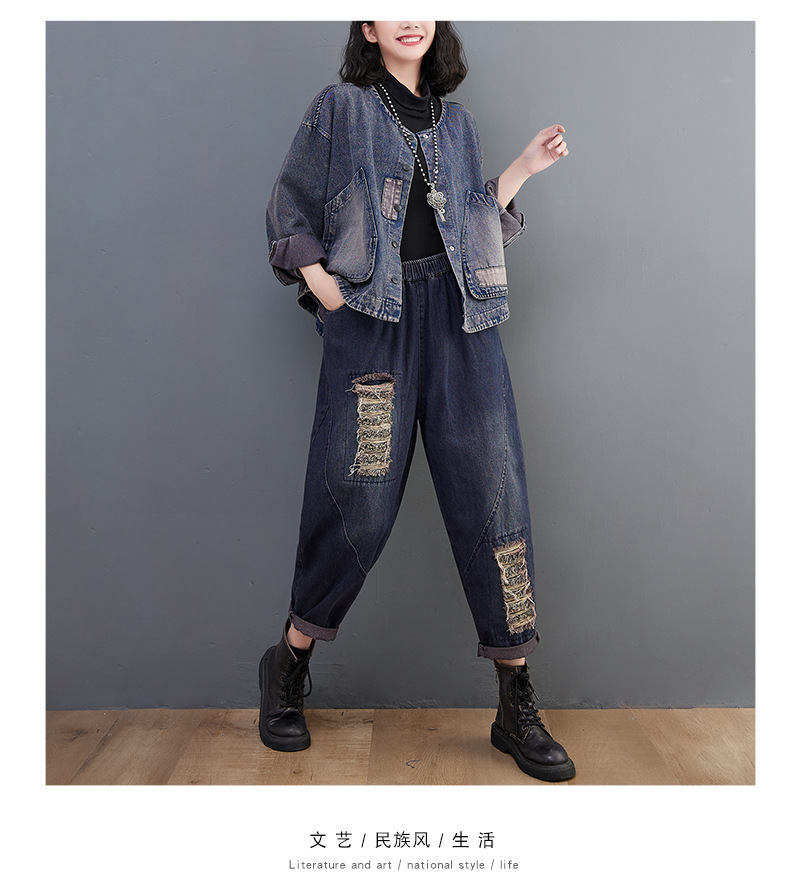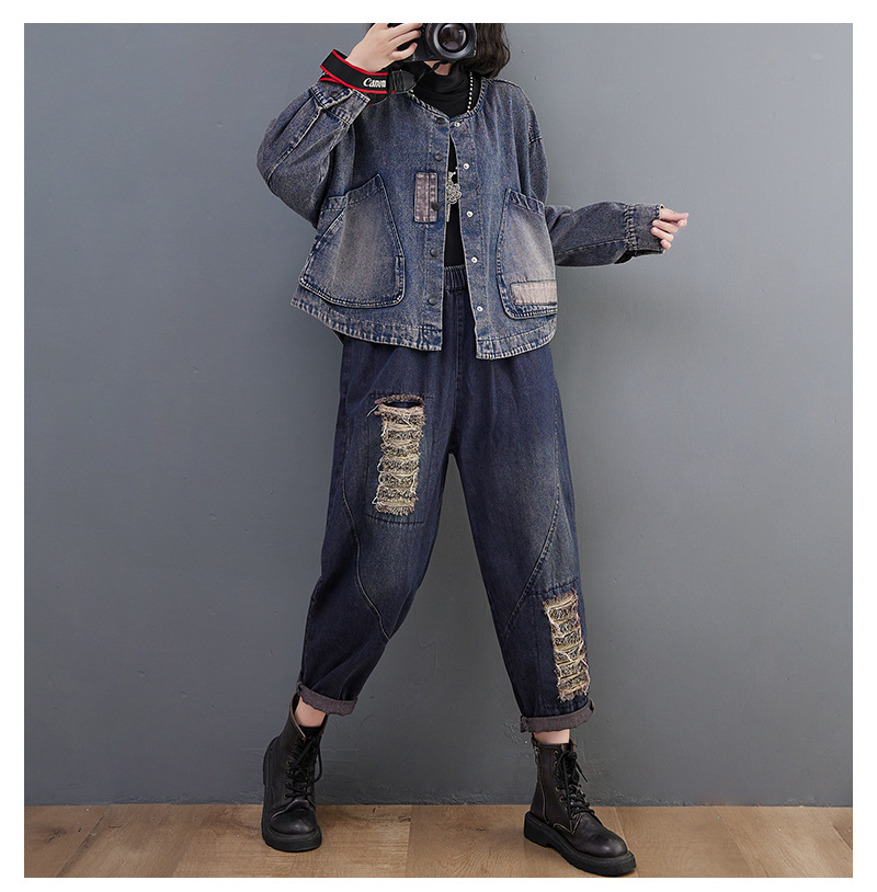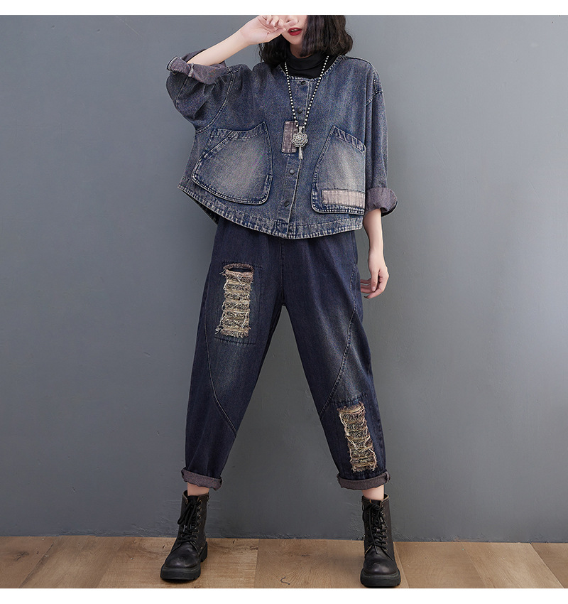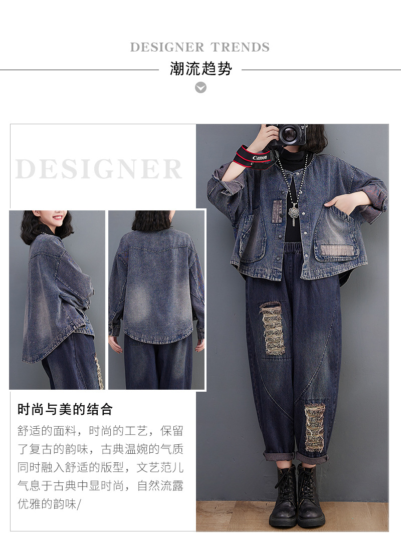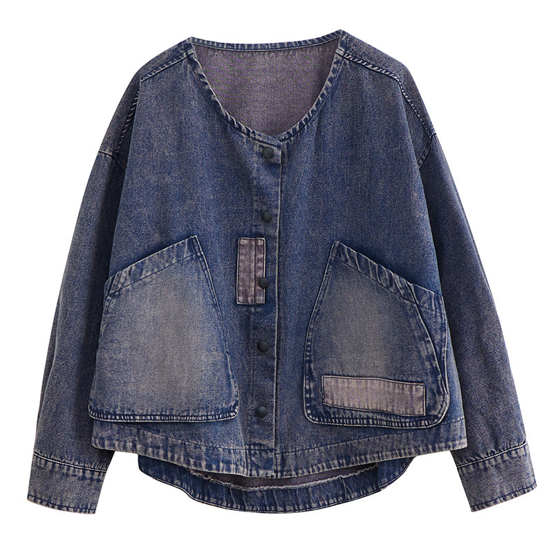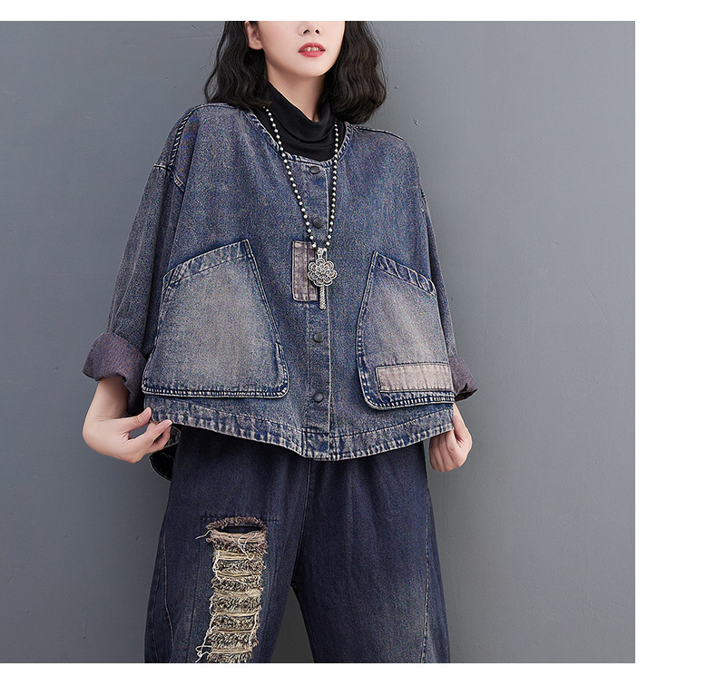 Настоящий выстрел в наличии Джинсовое пальто Женская 2023 осень с длинным рукавом темная ретро свободная Короткая Повседневная Женская одежда с вышивкой