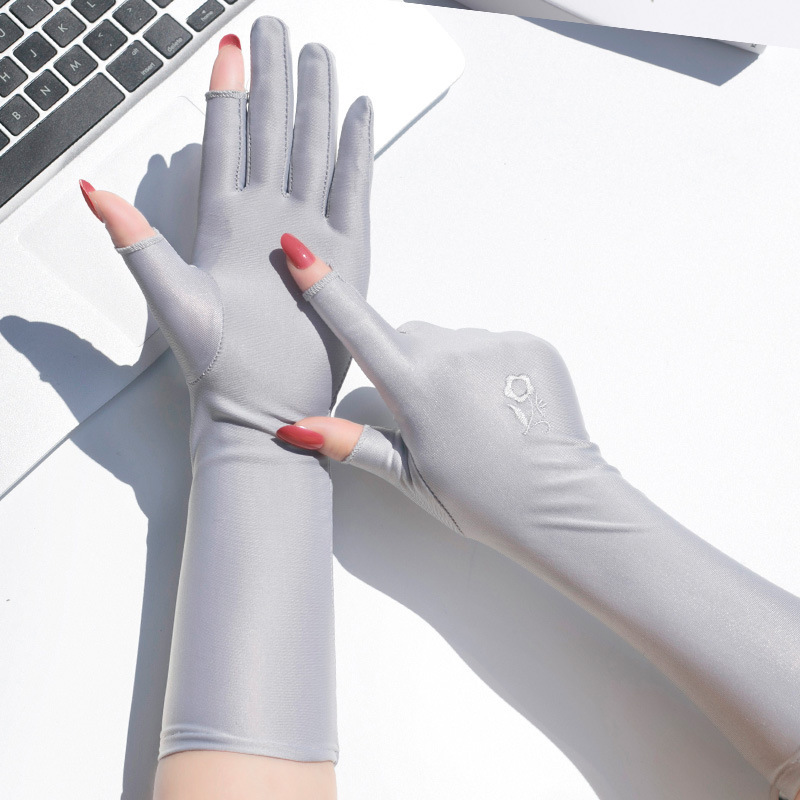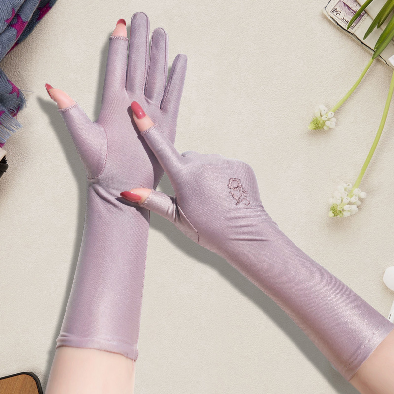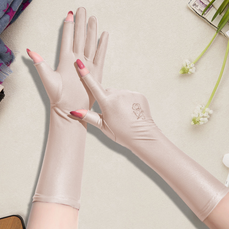 Летние тонкие длинные перчатки из спандекса с цветочным принтом для вождения, езды на велосипеде, для невест, свадеб, для женщин, студенток, как защита от солнца и для защиты рук.