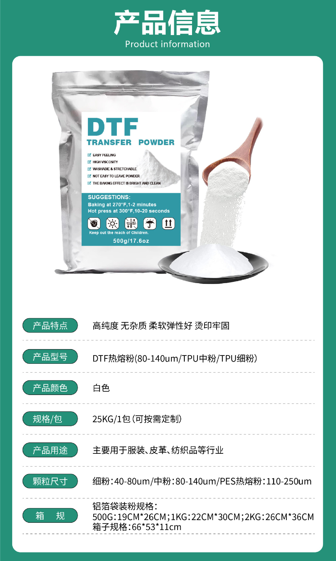 Специальный термопластичный порошок для термопереноса DTF, мелкодисперсный, высокоэластичный, белый PES, термоплавкий клей в наличии.