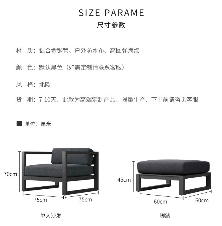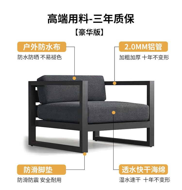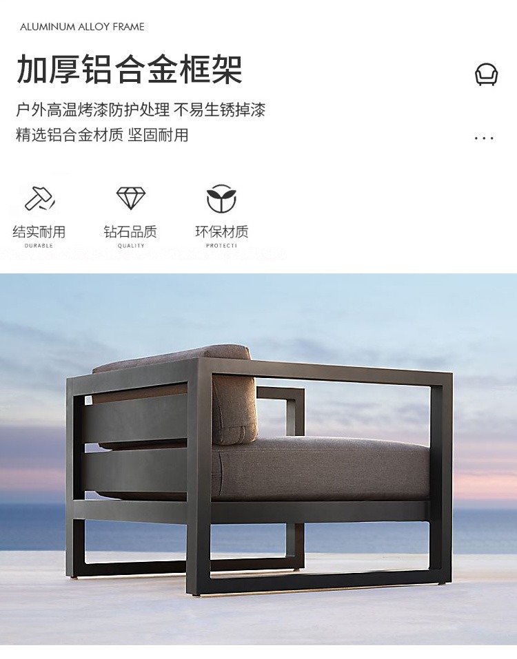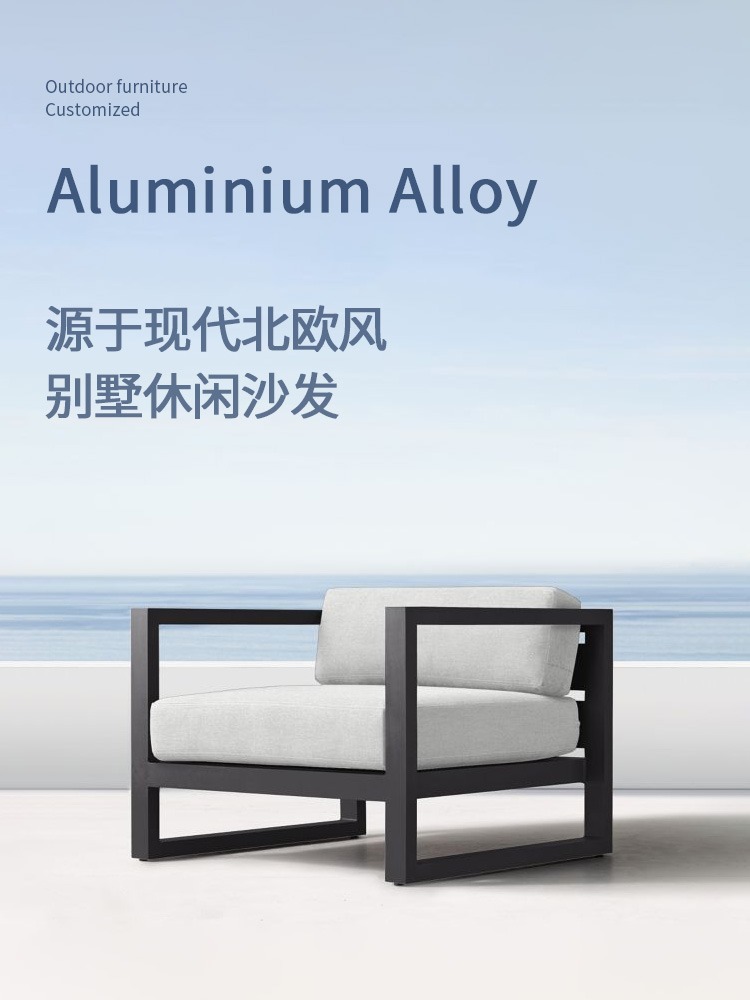 Диван для отдыха на открытом воздухе Водонепроницаемый солнцезащитный крем Вилла День росы Балкон Дизайнерская модель Комбинация из алюминиевого сплава Одноместный стул