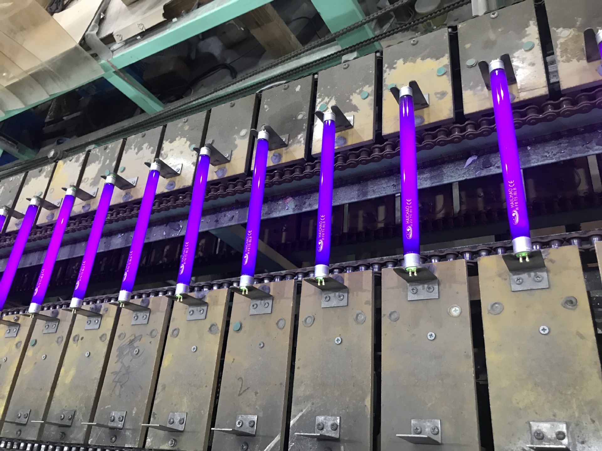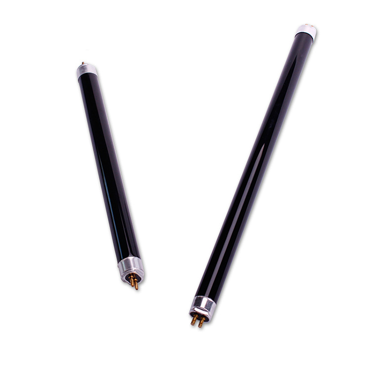 工作原理: 紫光管的工作原理和普通照明用荧光灯相同,其差异仅在于,紫光灯管所使用的荧光粉在254nm短波紫外线辐射激发下产生主峰为365nm的不可见的长波紫外线辐射。由于使用玻璃管不同,可分为两大类。一类是使用不透可见光的紫黑玻璃管,这类灯管发出的主峰为365nm的近紫外线辐射,波长范围为300-400nm。另一类使用普通玻璃管(即:普通黑光灯),其发出的辐射中除了365nm的长波辐射外,还有400nm附近的可见蓝光.后一种灯的应用范围较小,大都用于诱虫。