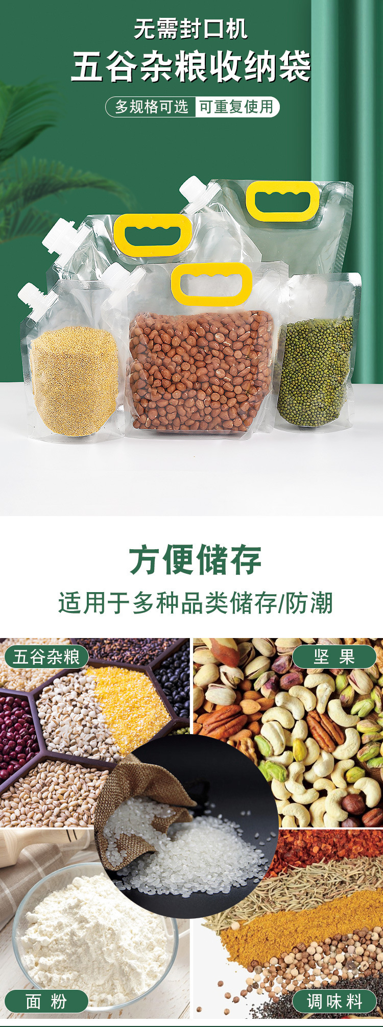 Прозрачный мешок для всасывания зерна самонесущий герметизирующий мешок 10 кг 5 кг прозрачный вспомогательный мешок для хранения зерна