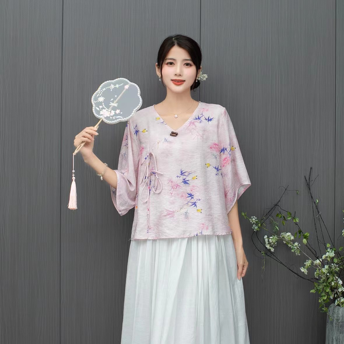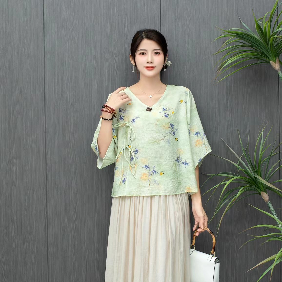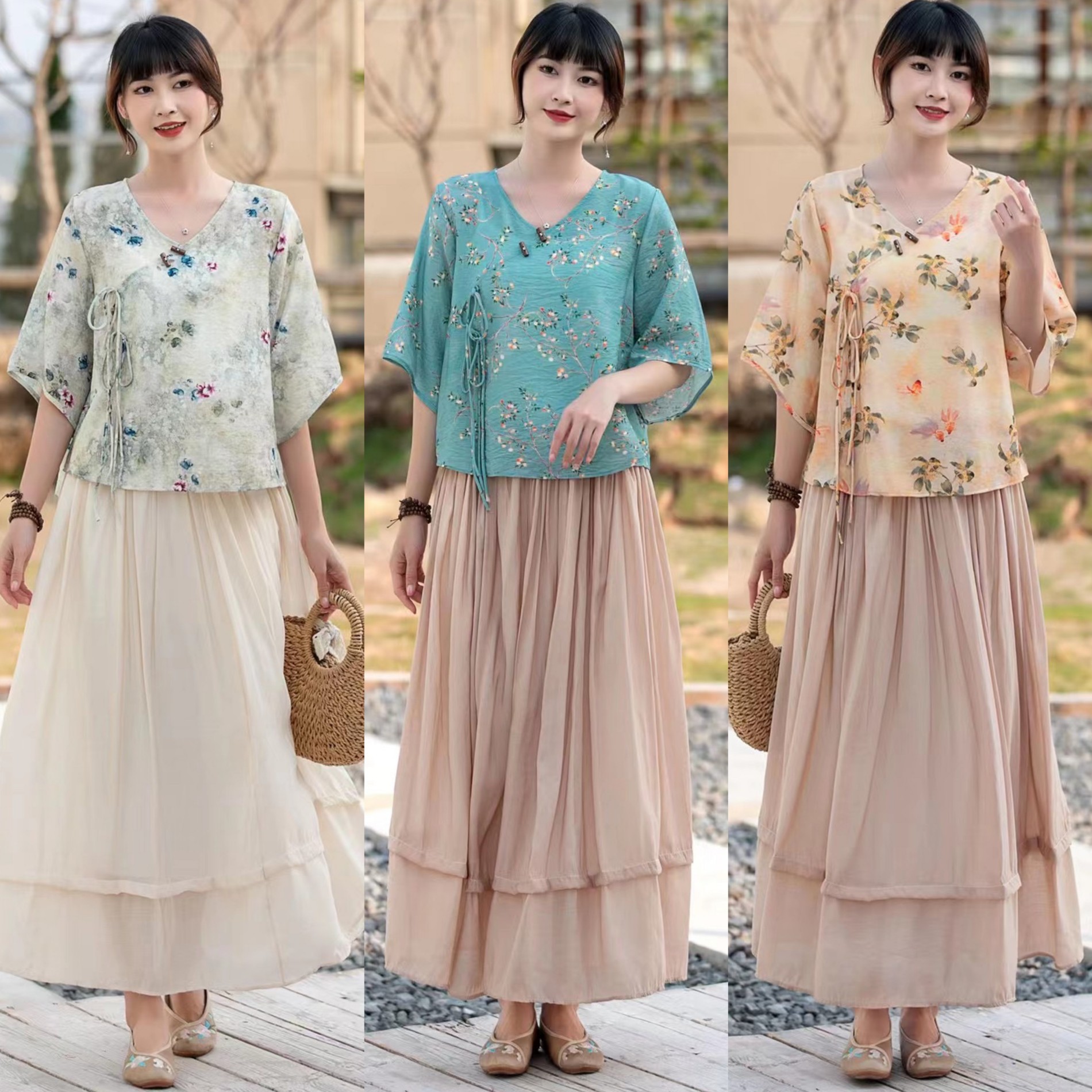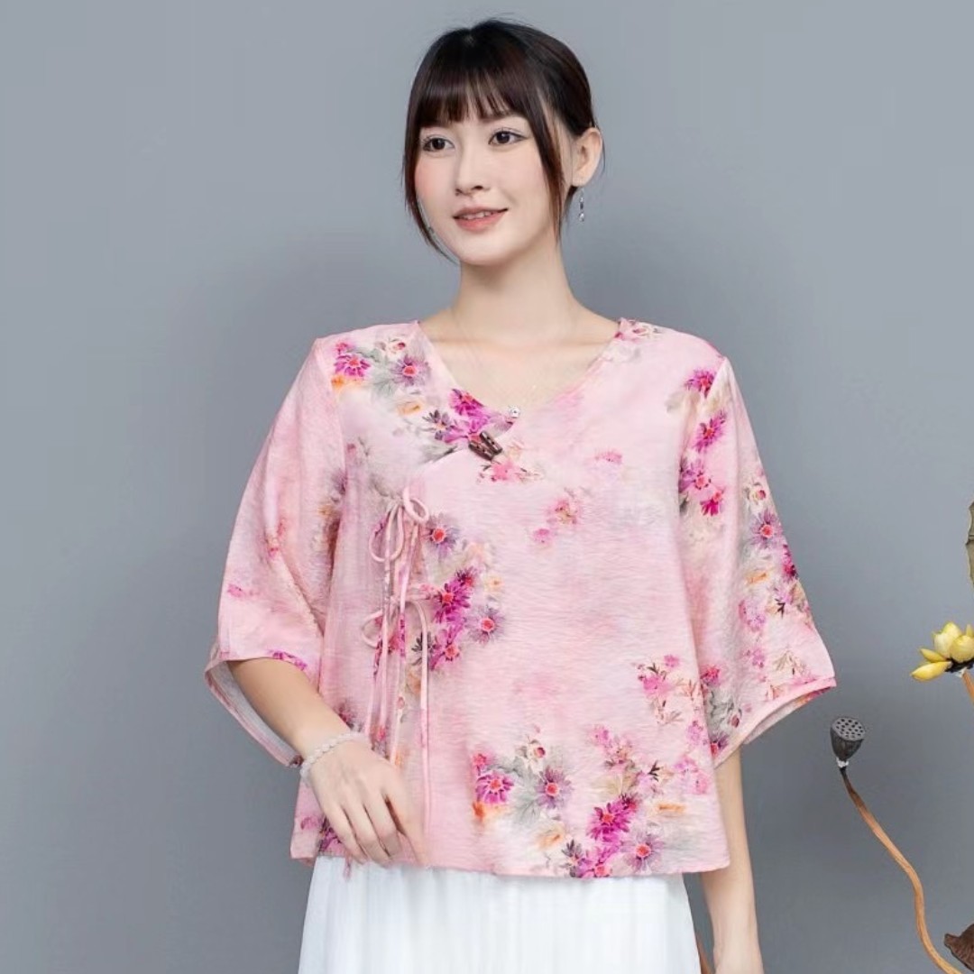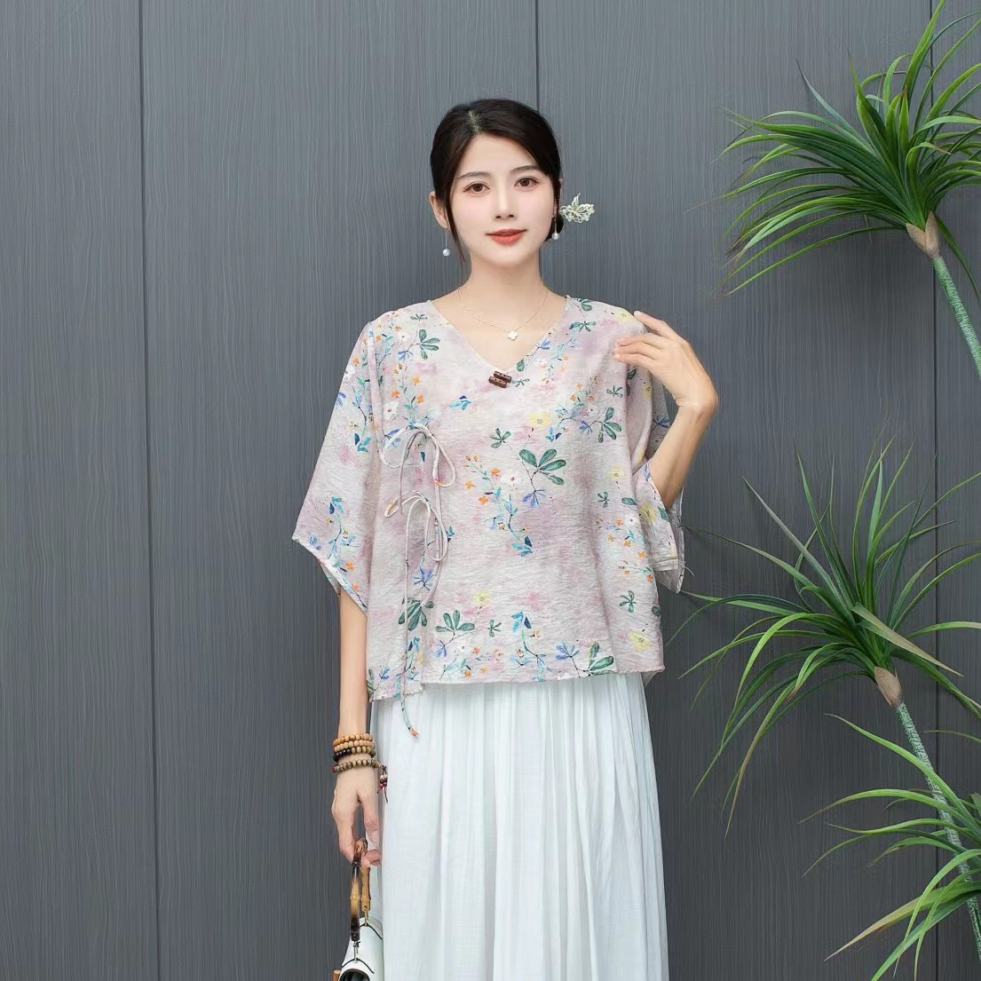 Костюм Hanfu, новинка лета 2024 года, улучшенный хлопковый и льняной костюм с принтом Hanfu, повседневный свободный костюм с юбкой в стиле ретро.