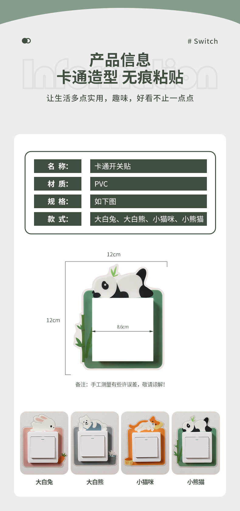 Наклейка на выключатель панда; Наклейка на выключатель Cat; Белый Медведь переключатель стикер; Кролик Переключатель стикер