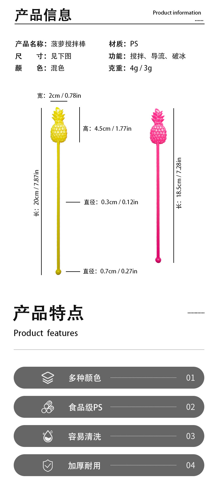 Блендер ананасовый бар одноразовый блендер пластиковый стержень ананасового сока кофейный стержень
