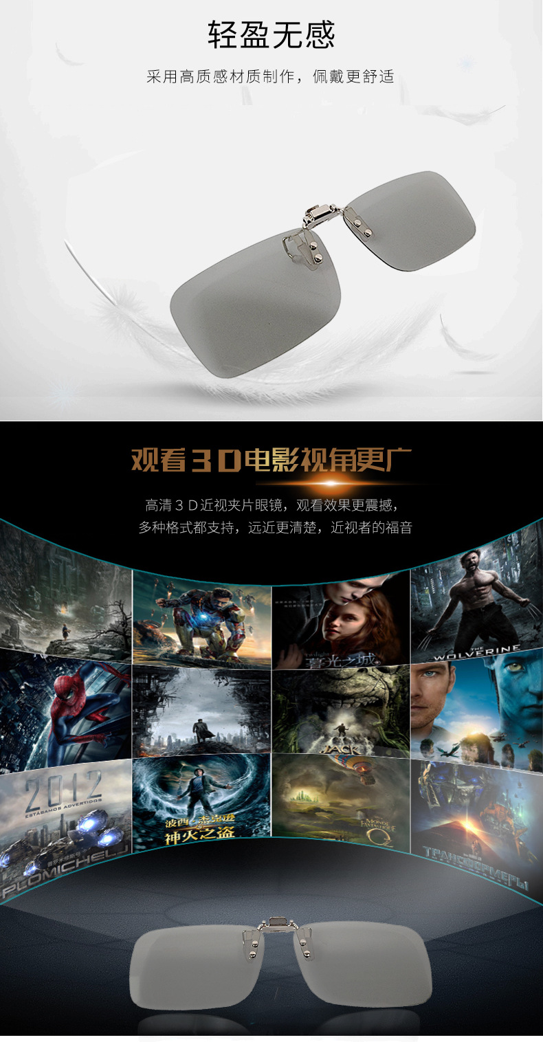 Кино 3D клип для близорукости кино Reald Cinema Wanda IMAX специальный поляризационный светильник 3D стерео зажим для очков