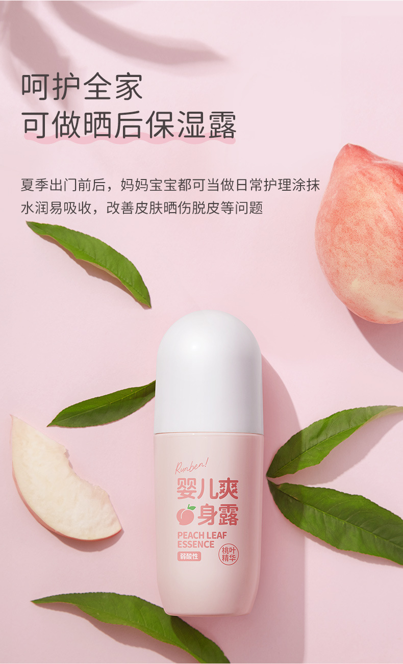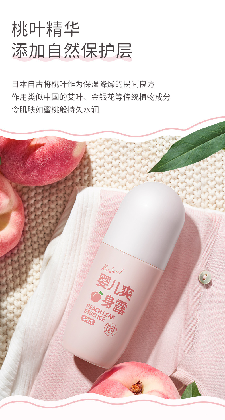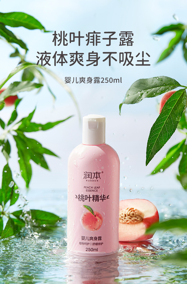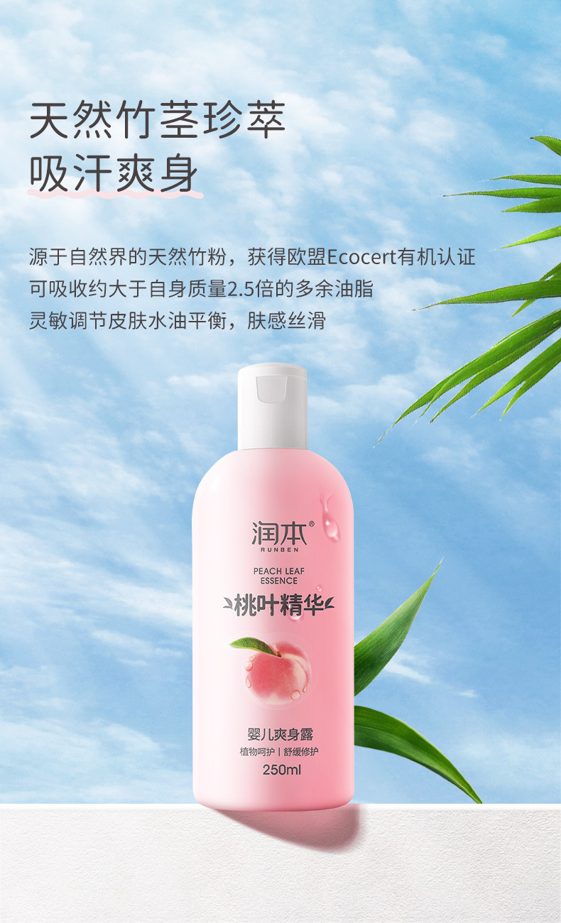 Увлажняющая детская Освежающая роса тела Новорожденный ребенок Экстракция эссенции из персиковых листьев Поглощение пота Освежающая увлажняющая вода для тела Увлажняющая не плотная