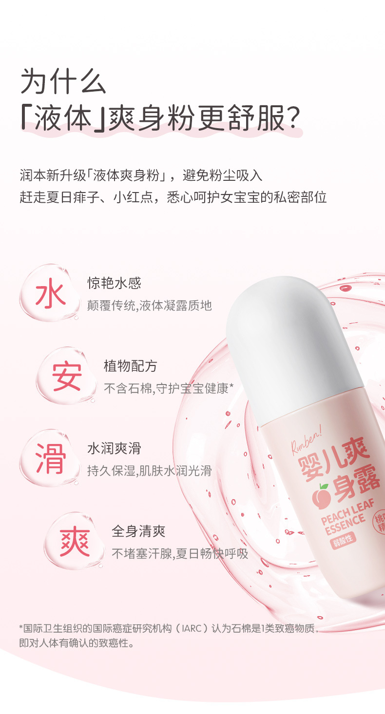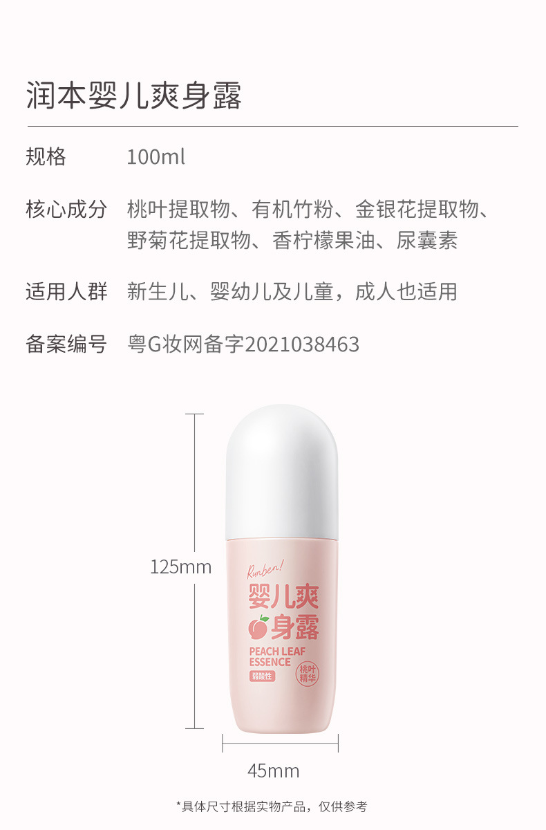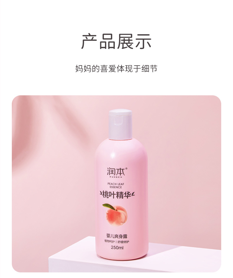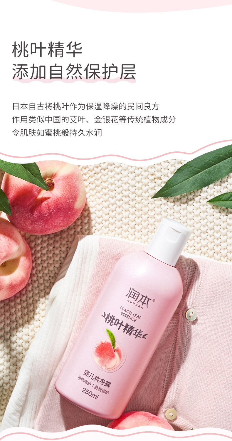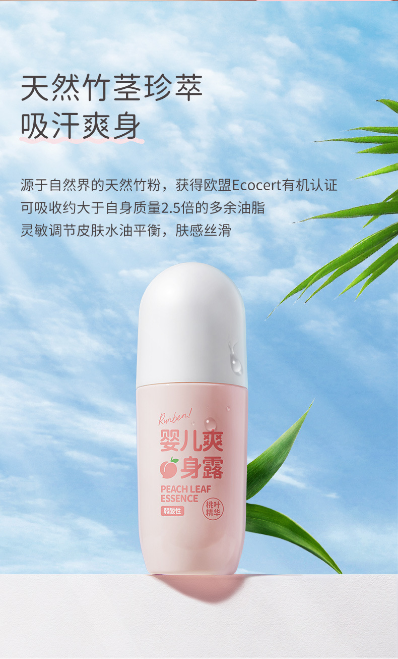 Увлажняющая детская Освежающая роса тела Новорожденный ребенок Экстракция эссенции из персиковых листьев Поглощение пота Освежающая увлажняющая вода для тела Увлажняющая не плотная