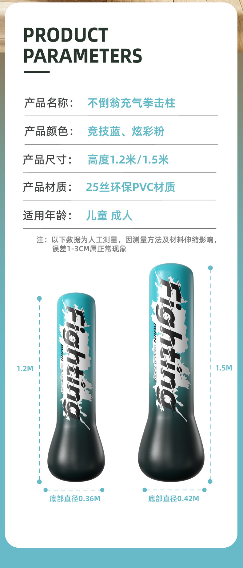 Красный 1,6 м (упаковка с цветной картой); Желтый 1,6 м (упаковка с цветной картой); Черный 1,6 м (упаковка с цветной картой); 1,2 м разноцветный розовый боксерский столб; 1,5 м разноцветный розовый боксерский столб; Конкурентоспособная синяя боксерская стойка длиной 1,2 м.; Конкурентоспособная синяя боксерская стойка длиной 1,5 м.; Новый розовый боксерский стол высотой 1,2 м.; Новый разноцветный розовый боксерский стол высотой 1,5 м.; Новый синий боксерский стол высотой 1,2 м для соревнований; Новый синий боксерский стол высотой 1,5 м для соревнований