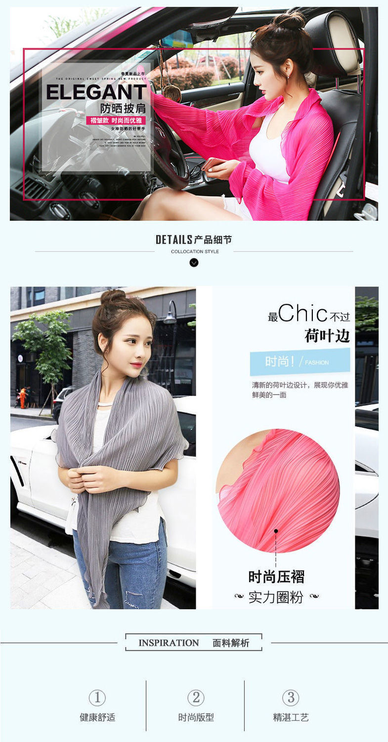 Новый летний женский шифоновый солнцезащитный дышащий плиссированный платок для вождения, велосипедный пляжный солнцезащитный кардиган