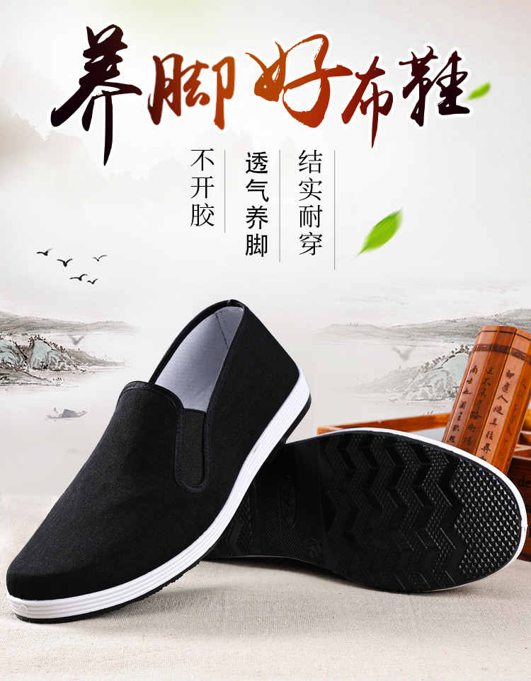 Поколение старой Пекинской тканевой обуви, Мужская черная Тканевая обувь, мужская тканевая подошва из говяжьего сухожилия, сетчатая обувь, повседневная универсальная Тканевая обувь без шнуровки