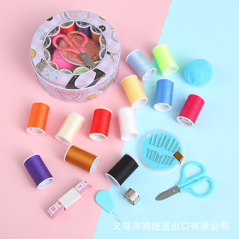 Круглая оконная железная коробка Швейная коробка костюм Швейный инструмент Бытовой студенческий швейный чехол для хранения Ручная швейная сумка