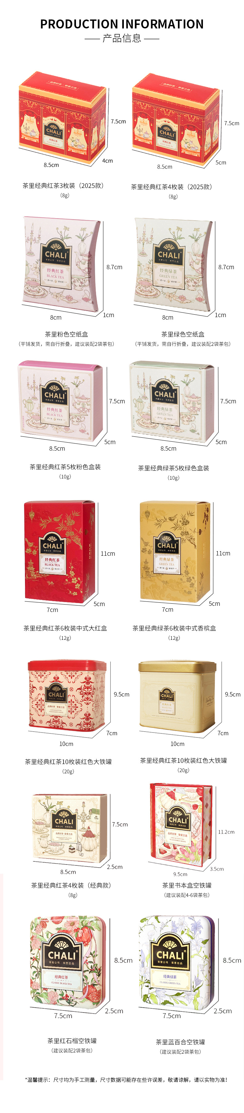 [Классический черный чай] 3 пакетика в красной квадратной коробке.; [Классический черный чай] 4 пакетика в красной квадратной коробке.; [Классический черный чай] 4 пакетика в классической коробке.; [Классический черный чай] 5 пакетиков в розовой квадратной коробке.; [Классический черный чай] 6 пакетиков в красной китайской коробке.; [Классический черный чай] 10 пакетиков в большой красной жестяной банке; [Классический черный чай] 10 пакетиков в золотой железной банке; [Классический зеленый чай] 5 пакетиков в зеленой квадратной коробке.; [Классический зеленый чай] 8 пакетиков в зеленой длинной коробке; [Классический черный чай] 2 штуки (розовая пустая бумажная коробка + 2 чайных пакетика) необходимо сложить и упаковать самостоятельно.; [Классический зеленый чай] Набор из 2 штук (пустая бумажная коробка + 2 чайных пакетика) — необходимо сложить и упаковать самостоятельно.; [Классический черный чай] 2 штуки (железная коробка с красным гранатом + 2 чайных пакетика) необходимо упаковать в коробку самостоятельно.; 【Классический зеленый чай】Набор из 2 упаковок (банка Blue Lily + 2 чайных пакетика) - Требуется самостоятельная сборка.; [Классический черный чай] Набор из 4 упаковок (коробка для чайного времени + 4 чайных пакетика) Необходимо упаковать в коробки самостоятельно; [Новые чайные конфеты] Конфеты с молочным чаем со вкусом черного чая сакуры, 24 г, квадратная коробка; [Новый чайный лакомство] Конфеты с вкусом черного чая и молочного чая "Сакура", 36 г, высокая квадратная жестяная банка; [Новый чайный лакомство] Молочный чай с вкусом черного чая и сакуры, 48 г, квадратная жестяная банка; [Новые чайные конфеты] Конфеты с вкусом персикового улунного чая и молока, 24 г, длинная коробка; [Новые чайные конфеты] Конфеты с вкусом персикового улунного чая и молока, квадратная коробка, 30 г; [Новый чайный лакомство] Молочный чай с вкусом персикового улуна, 36 г, прямоугольная банка; [Новые чайные конфеты] Конфеты с вкусом персикового улунного чая и молока, 48 г, железная банка; [Новые чайные конфеты] Конфеты с вкусом молочного чая Цинти Лунцзин, 24 г, длинная коробка; [Новые чайные конфеты] Конфеты с вкусом молочного чая Цинти Лунцзин, квадратная коробка 30 г; [Новые чайные конфеты] Конфеты с вкусом молочного чая Цинти Лунцзин, 48 г, железная банка; 【Новые чайные конфеты】Золотой османтус, черный чай, ароматизированные молочные чайные конфеты, длинная коробка 24 г; [Новые чайные конфеты] Золотой османтус, черный чай, ароматизированные молочные чайные конфеты, квадратная коробка 30 г; [Новые чайные конфеты] Золотой османтус, черный чай, ароматизированные молочные чайные конфеты, 36 г, железная банка; [Новый чайный лакомство] Золотой османтус, молочный чай с ароматом черного чая, 48 г, круглая банка; [Новые чайные конфеты] Кумкват с лимонным вкусом, очищенные жевательные конфеты, 36 г, квадратная железная банка; [Новые чайные конфеты] Жевательные конфеты с вкусом персикового улунга, 36 г, квадратная железная банка; [Новые чайные конфеты] Черный чай с личи, жевательные конфеты в соке, 36 г, квадратная коробка; [Новые чайные конфеты] Жевательные конфеты с черным чаем и личи, 36 г, прямоугольная коробка; [Новые чайные закуски] Жасминовый снежный бутон, миндальное ягодное тортилья, коробка 28 г