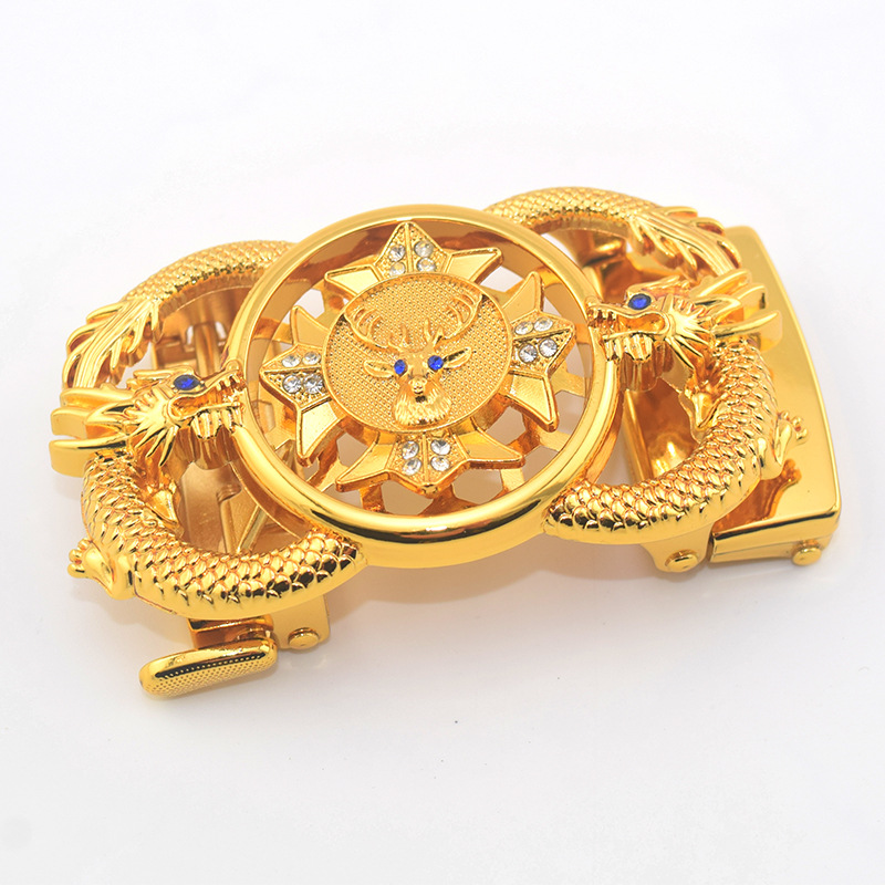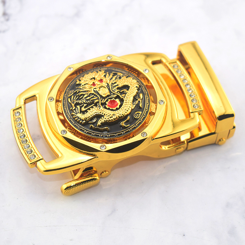 扣头特点;弹簧合金自动扣 龙形金色 时来运转可旋转 高档时尚龙图腾