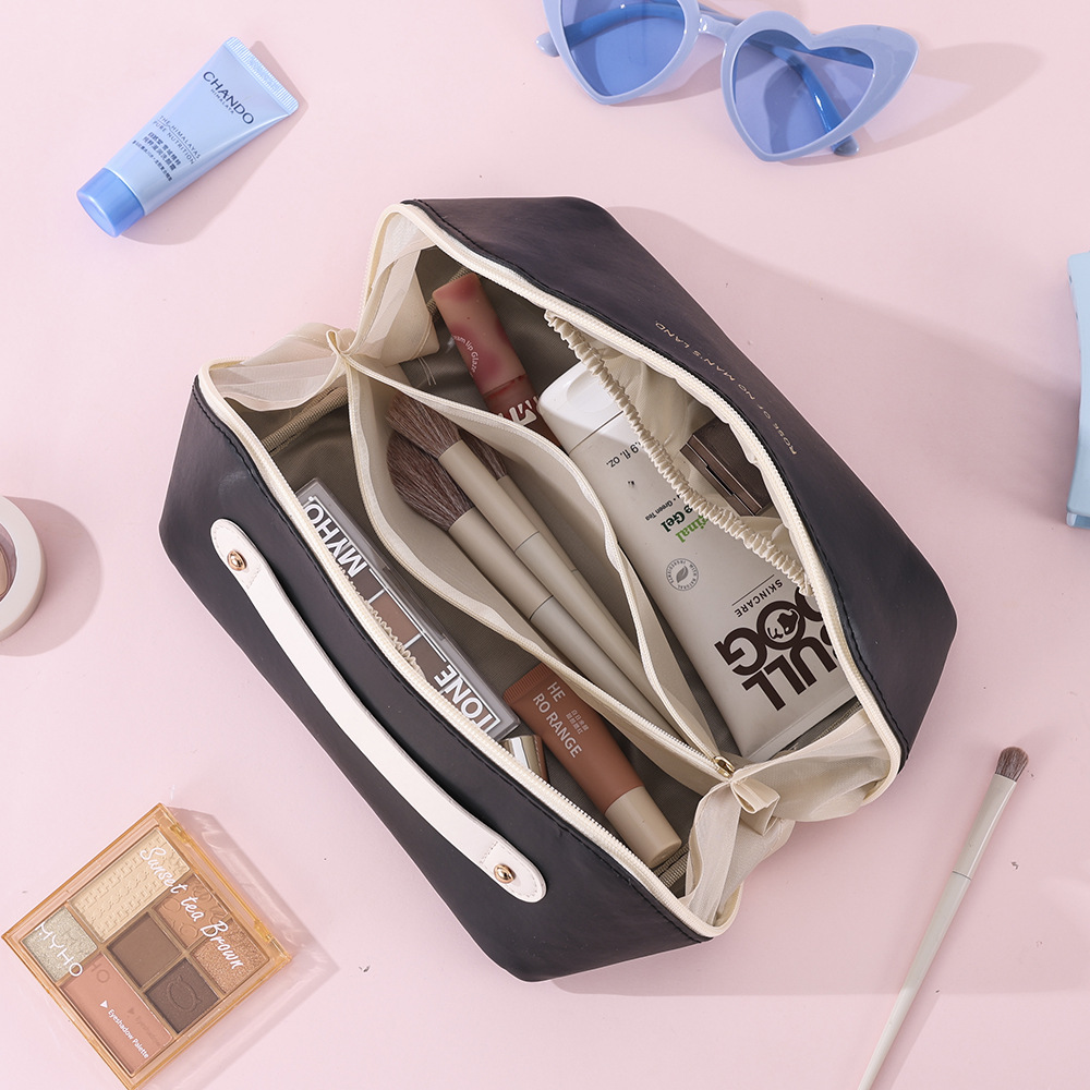 Модная косметичка, портативная дорожная сумка для хранения, вместительная сумка для туалетных принадлежностей, ручная, улучшающая внешний вид, косметичка из искусственной кожи.