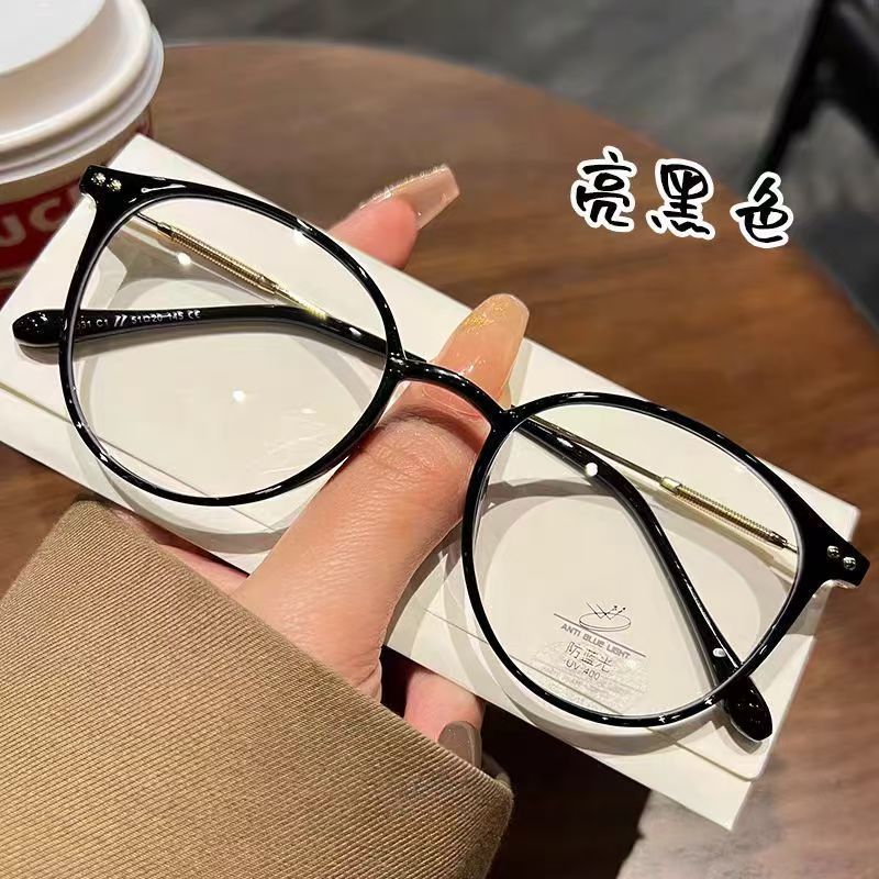 Большая рамка высокого класса черного цвета, анти-синий цвет, высокое чувство, большая рамка показывает лицо, маленькое анти-синий свет, плоское зеркало, корейская мода