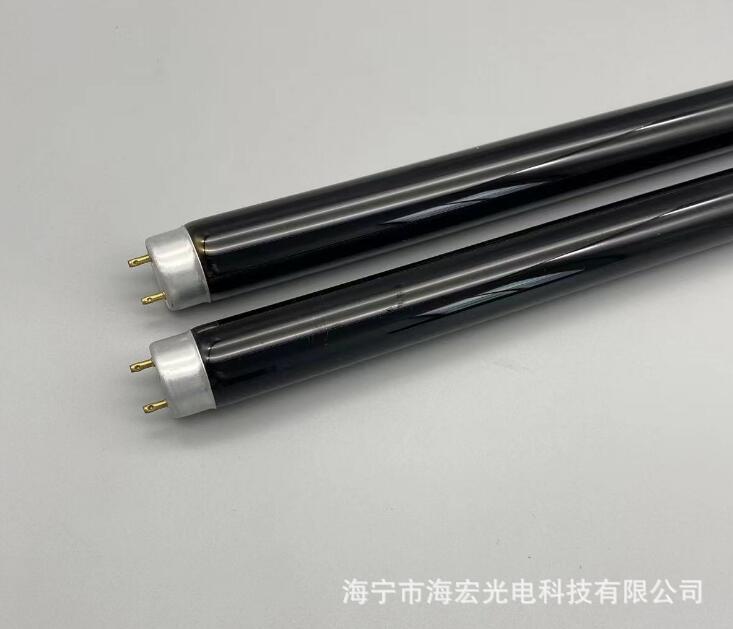 工作原理: 紫光管的工作原理和普通照明用荧光灯相同,其差异仅在于,紫光灯管所使用的荧光粉在254nm短波紫外线辐射激发下产生主峰为365nm的不可见的长波紫外线辐射。由于使用玻璃管不同,可分为两大类。一类是使用不透可见光的紫黑玻璃管,这类灯管发出的主峰为365nm的近紫外线辐射,波长范围为300-400nm。另一类使用普通玻璃管(即:普通黑光灯),其发出的辐射中除了365nm的长波辐射外,还有400nm附近的可见蓝光.后一种灯的应用范围较小,大都用于诱虫。
