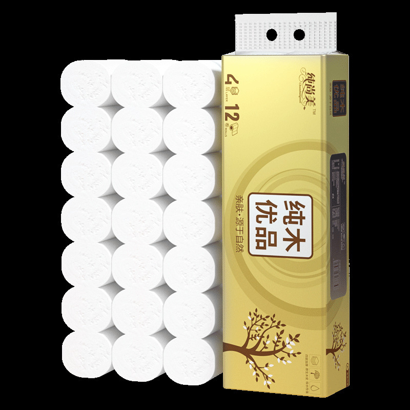 Pure Shangmei 14 рулонов туалетной бумаги Бытовая салфетка туалетная бумага рулон древесной массы четырехслойная утолщенная туалетная бумага цельная доставка