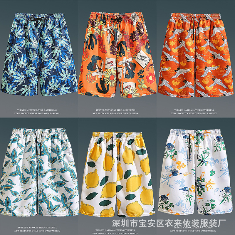 2025 новые пляжные брюки мужская мода с принтом пятиразовые шорты свободные повседневные пляжные брюки на открытом воздухе водные спортивные брюки