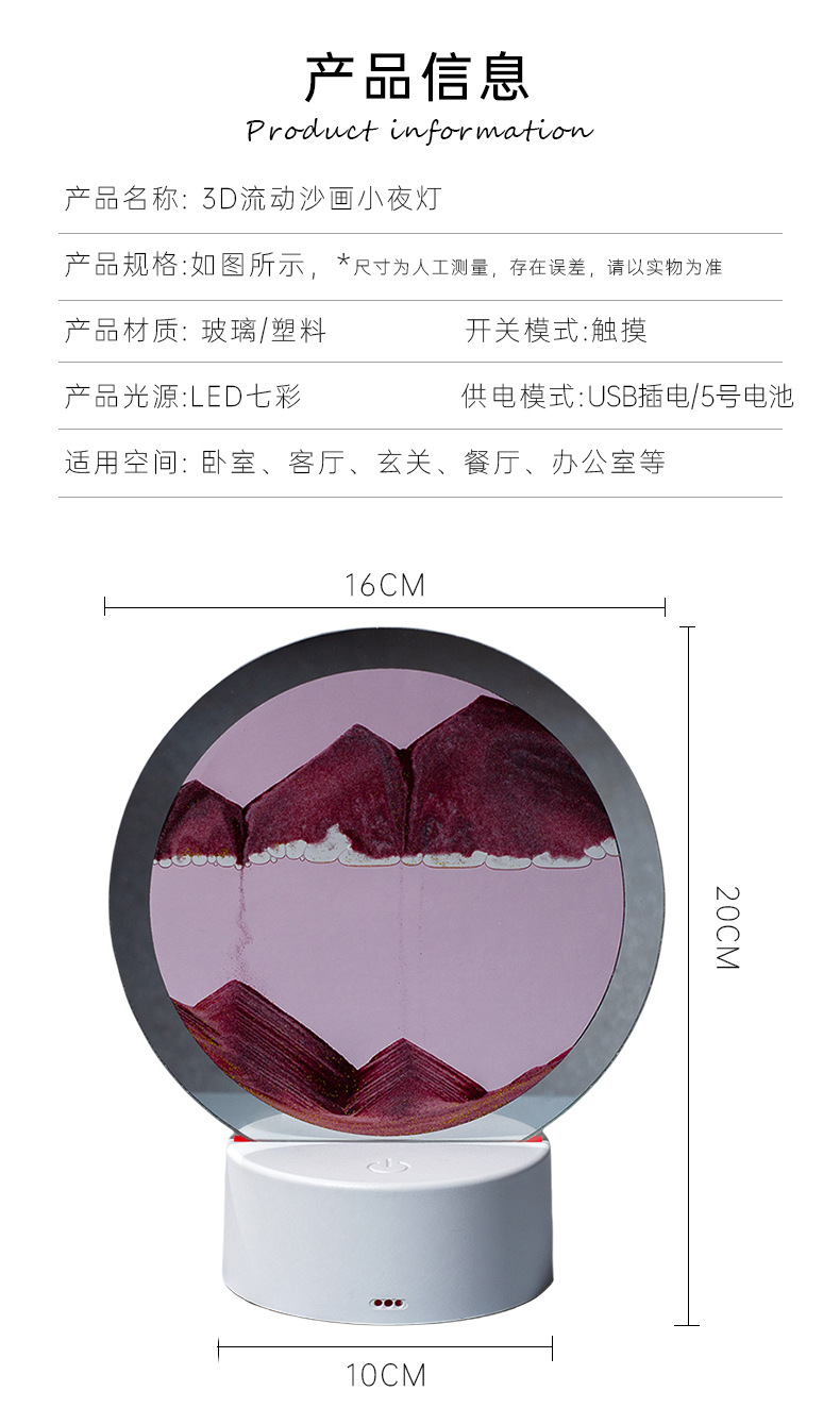 3d стекло зыбучие пески Живопись украшения подарки ночник настольная лампа USB плагин гостиная украшения дома подарки для мальчиков и девочек
