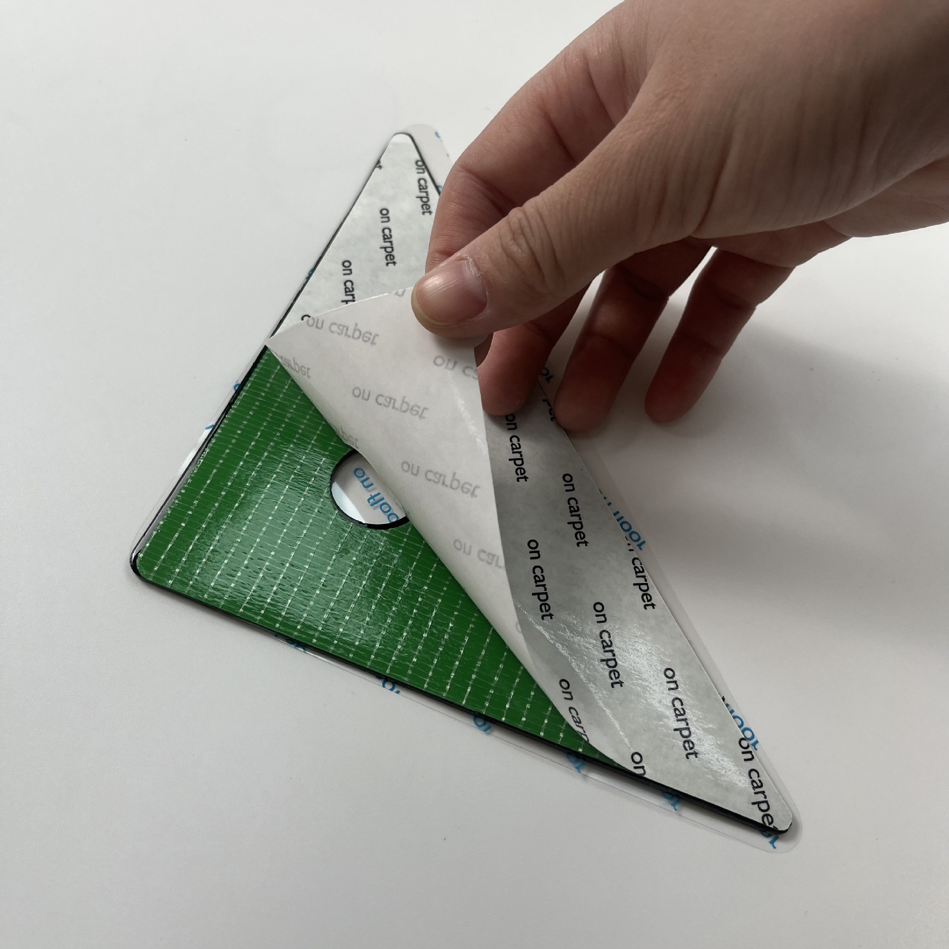 2:绿色那面贴合到地毯上,轻轻按压固定