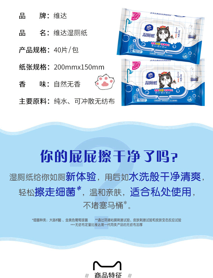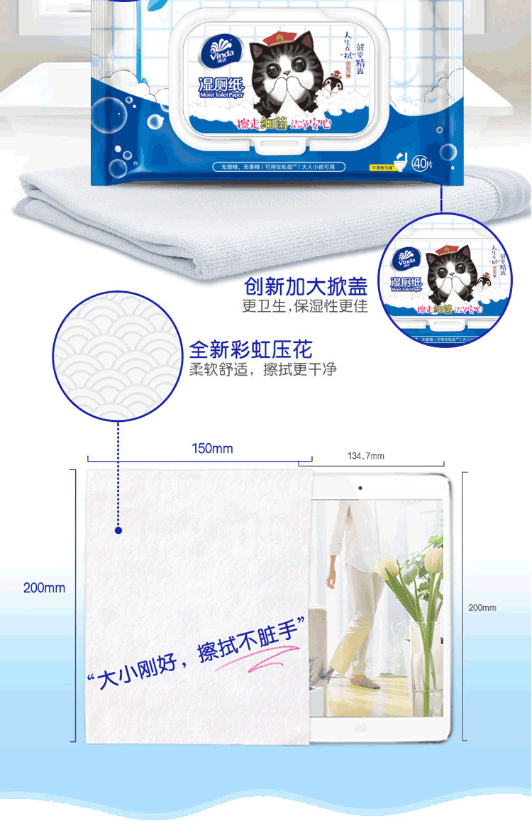 Vida Влажная туалетная бумага 40 штук VW3410 Толстая крышка с накачкой чистой воды салфетки для чистки геморроя