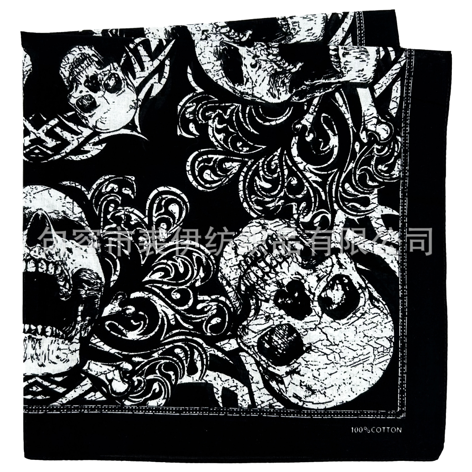 Спотовый хлопок 55CM черепа квадратный шарф персонализированный хип-хоп уличный танец квадратный шарф модный аксессуар для волос Хэллоуин декоративное лицо