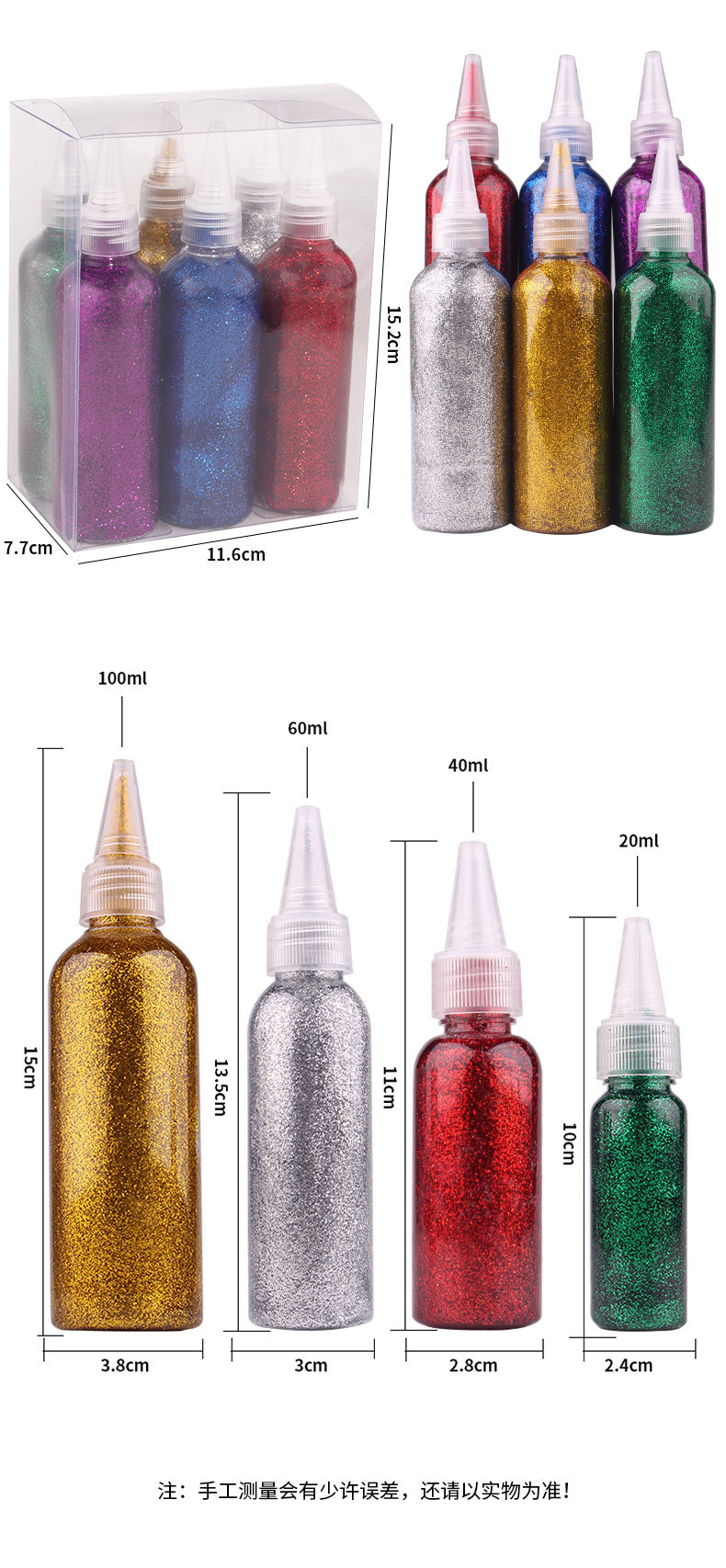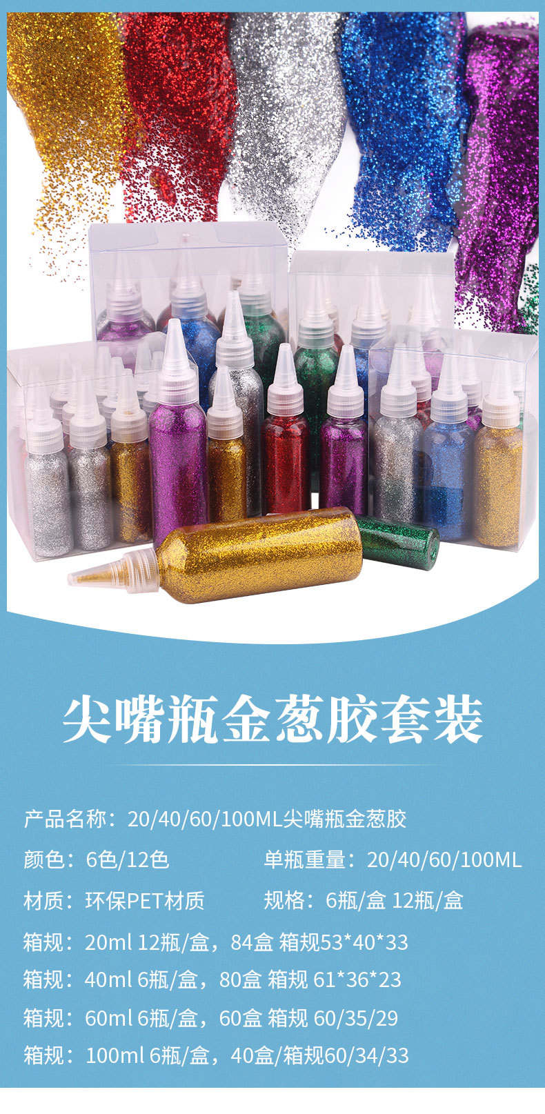 Оптовая Продажа с фабрики блеск клей DIY ручной работы детская КРАСОТА живопись охрана окружающей среды Блеск порошок блестки острый нос бутылка