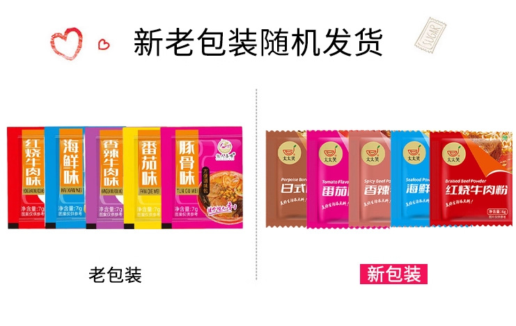 Вкус тушеного говядины 7г; Острый вкус говядины 7г; Свиная кость с вкусом говядины, 7 г; Морепродукты, вкус, 7 г; Томатный вкус с говядиной, 7 г