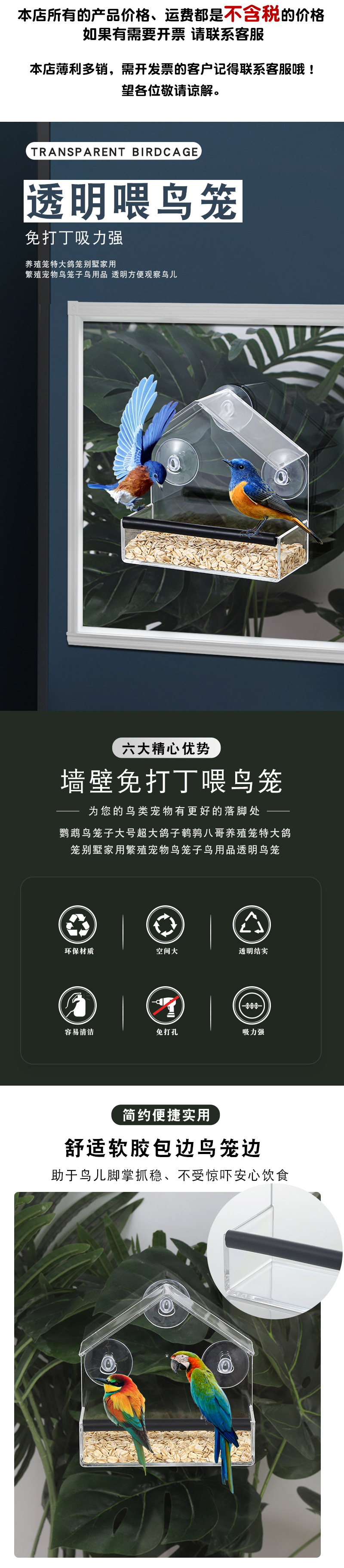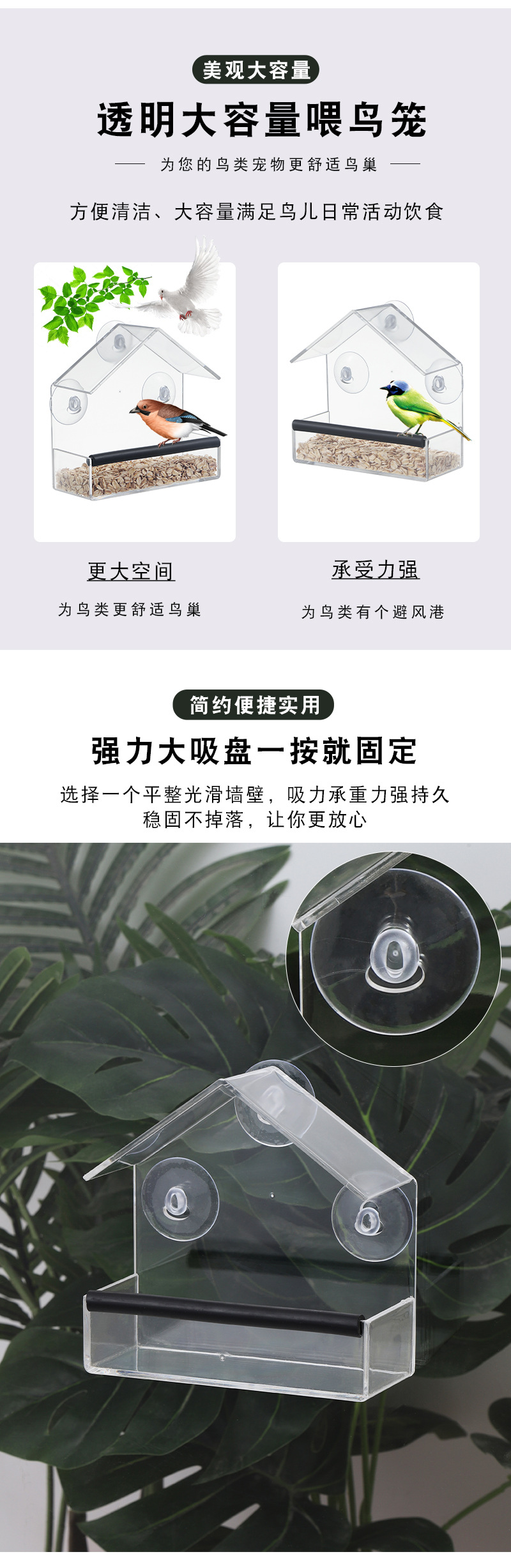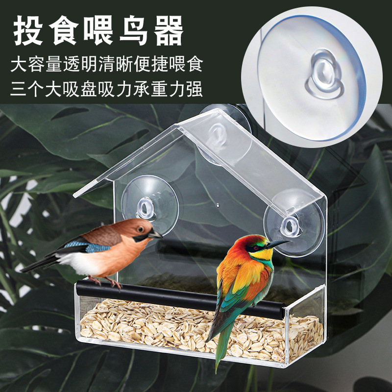 Новая акриловая клетка для птиц, без дырокола, присоска, кормушка для птиц, прозрачная настенная кормушка, товары для домашних животных
