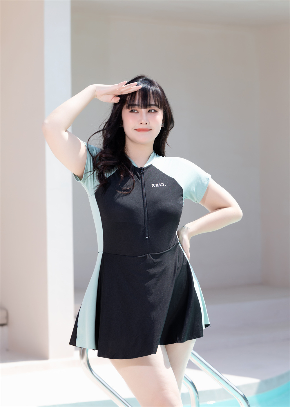Купальник больших размеров, Женская цельная юбка весом 200 кг, консервативный стиль в стиле ins, студенческий пухлый купальник с тонкими короткими рукавами и короткими рукавами, горячий весенний купальник