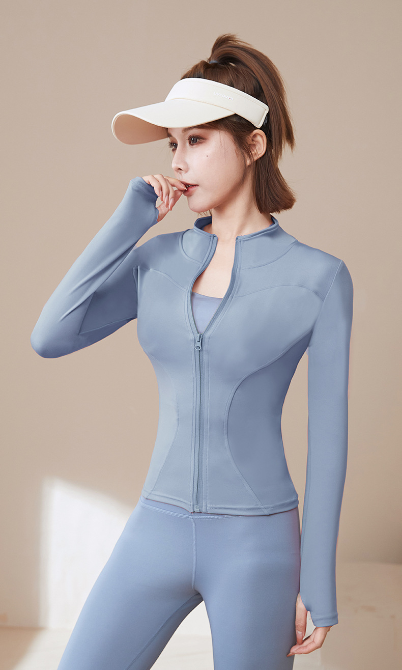 Летняя новая Солнцезащитная одежда Быстросохнущая спортивная куртка Солнцезащитная одежда Эластичная приталенная куртка для бега и фитнеса с вертикальным воротником Топ