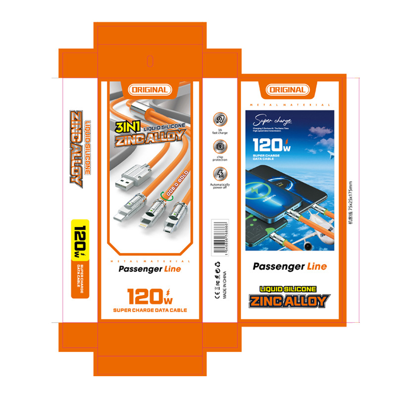Упаковочная коробка для кабелей из цинкового сплава мощностью 120 Вт, универсальная цветная коробка «три в одном», новая модель упаковки для кабелей для передачи данных OD6.0.
