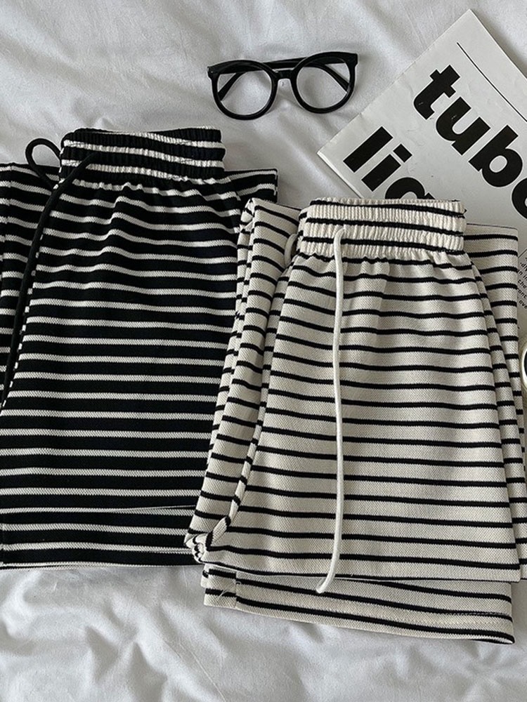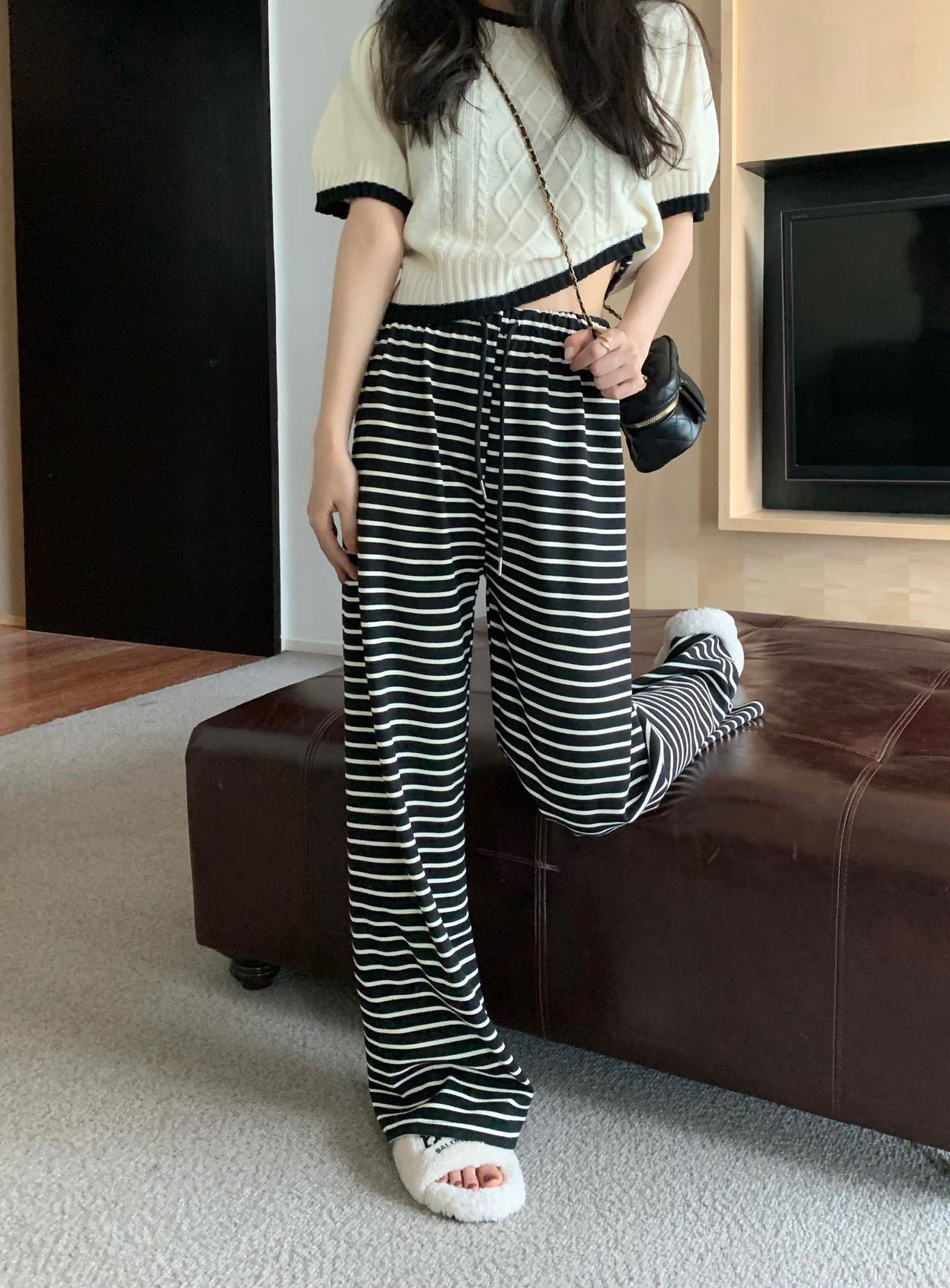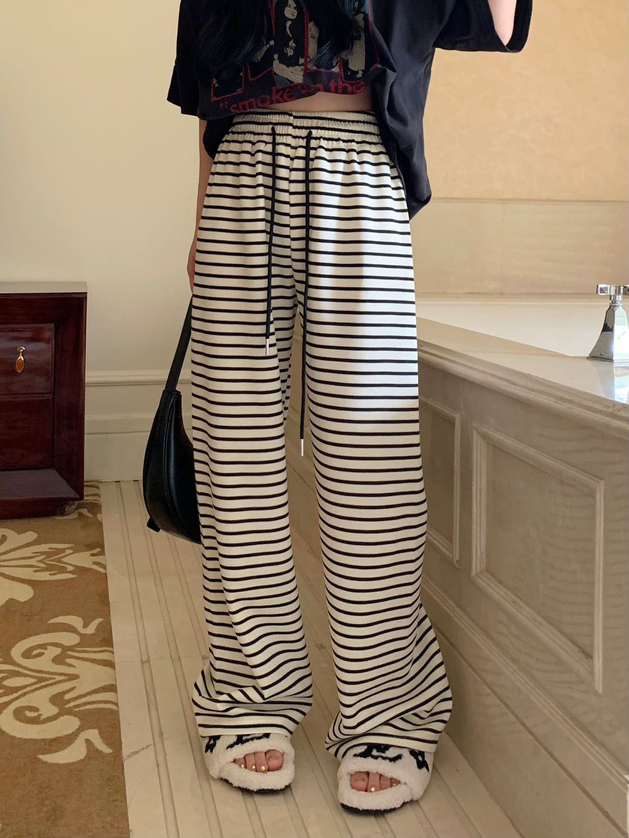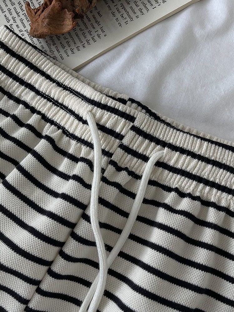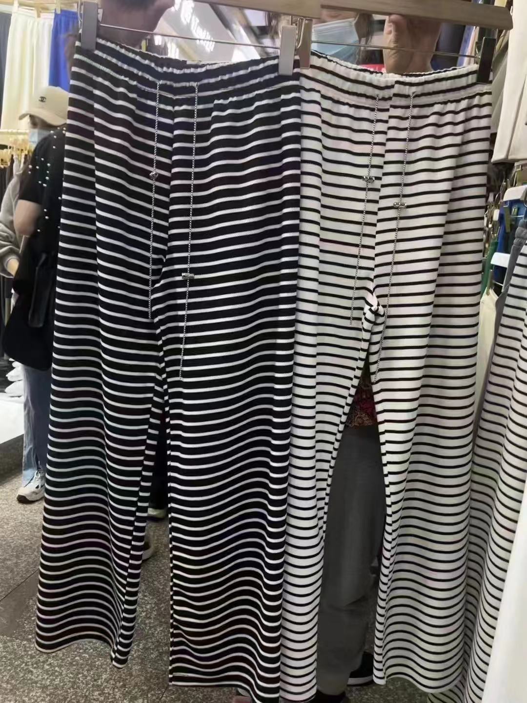 Новые черно-белые легкие эластичные свободные брюки с широкими штанинами в гонконгском стиле в горизонтальную полоску, узкие брюки с драпировкой и высокой талией