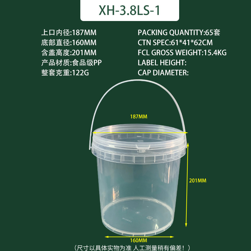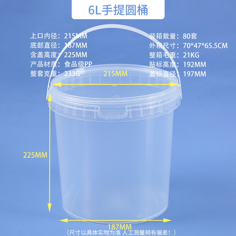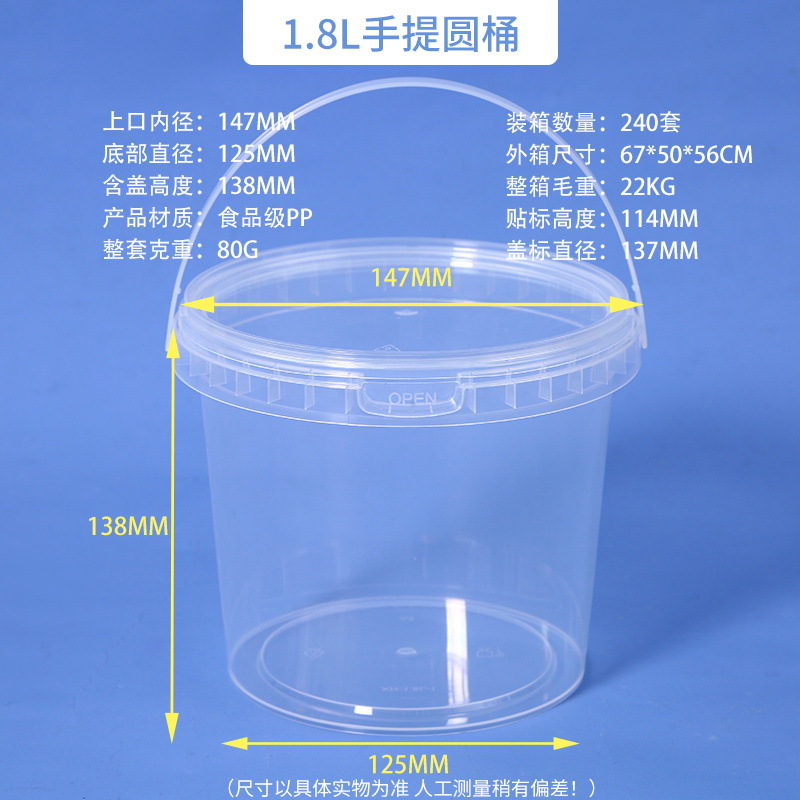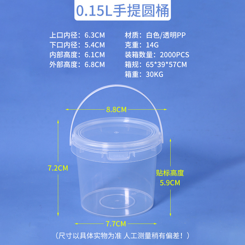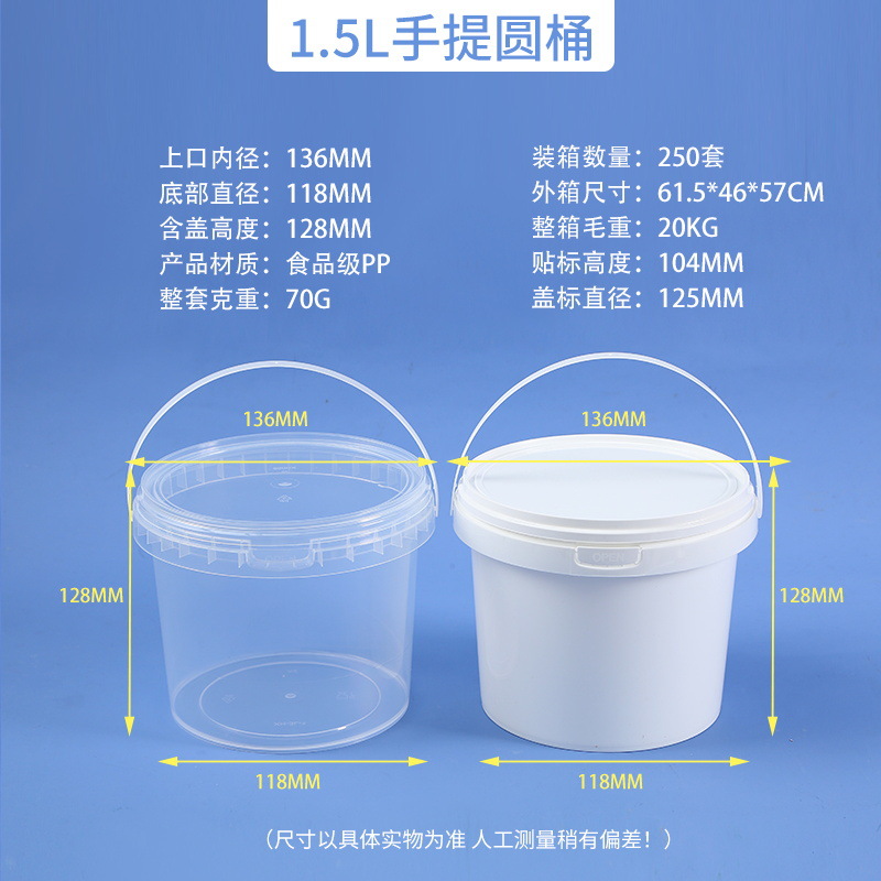 Фабрика пищевой чай с молоком pp уплотнение 0.15-5L круглое ведро для хранения пластиковый ведро прозрачный с крышкой ручной ведро