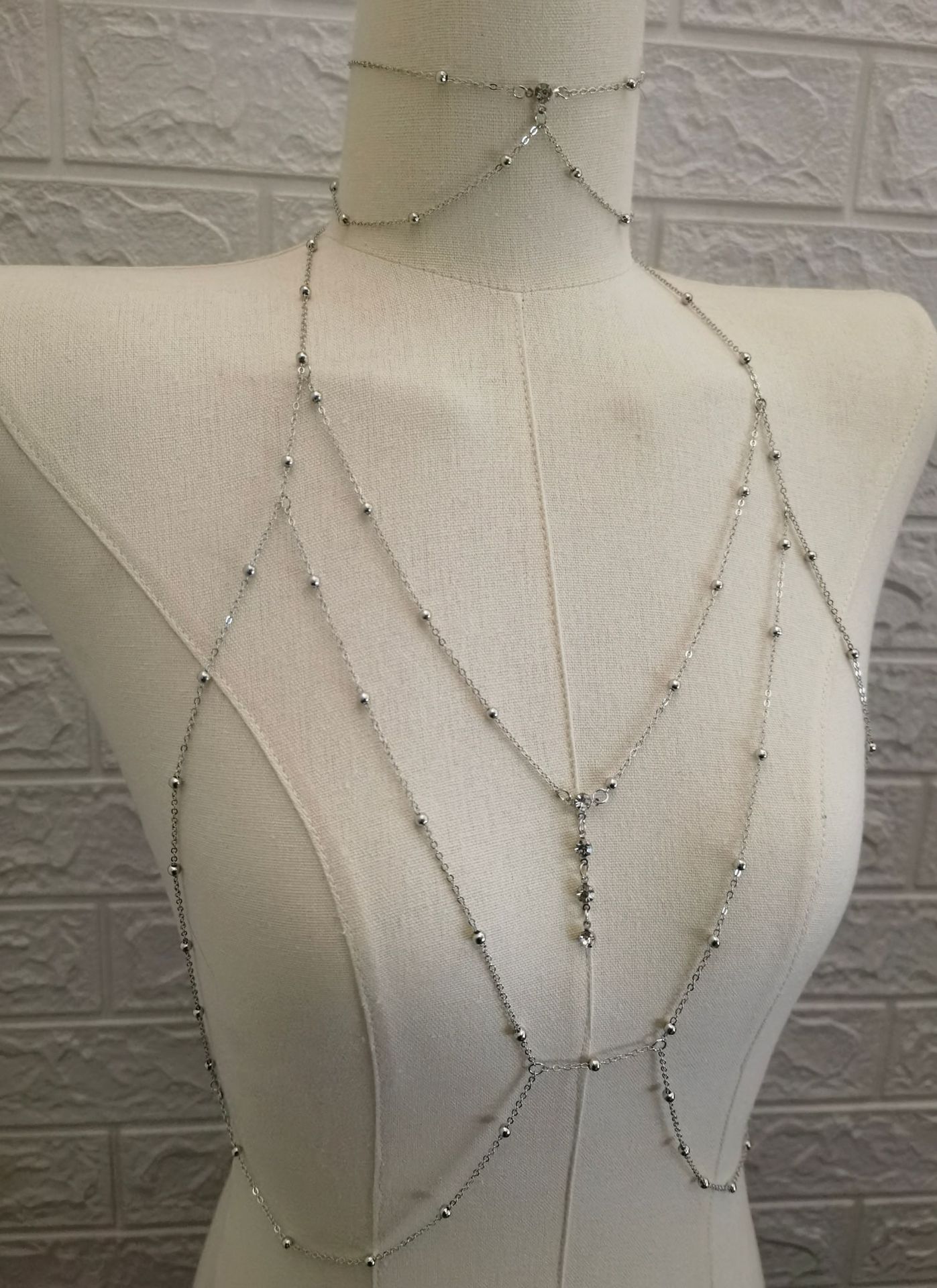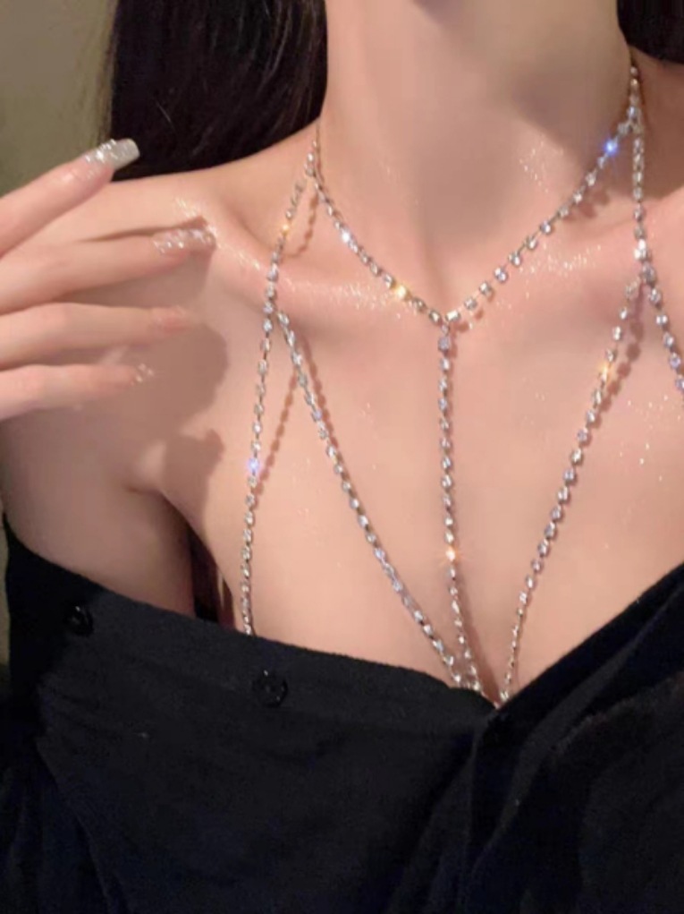 Трансграничная вспышка сексуальная грудная цепочка блестит европейская и американская ветряная цепочка тела нишевые металлические цепочки тела супер пряные модные бикини