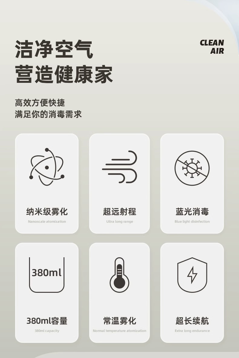 Наноразмерный распылитель без мертвого угла покрытия стерилизатора легких портативных беспроводных Blu-ray NA