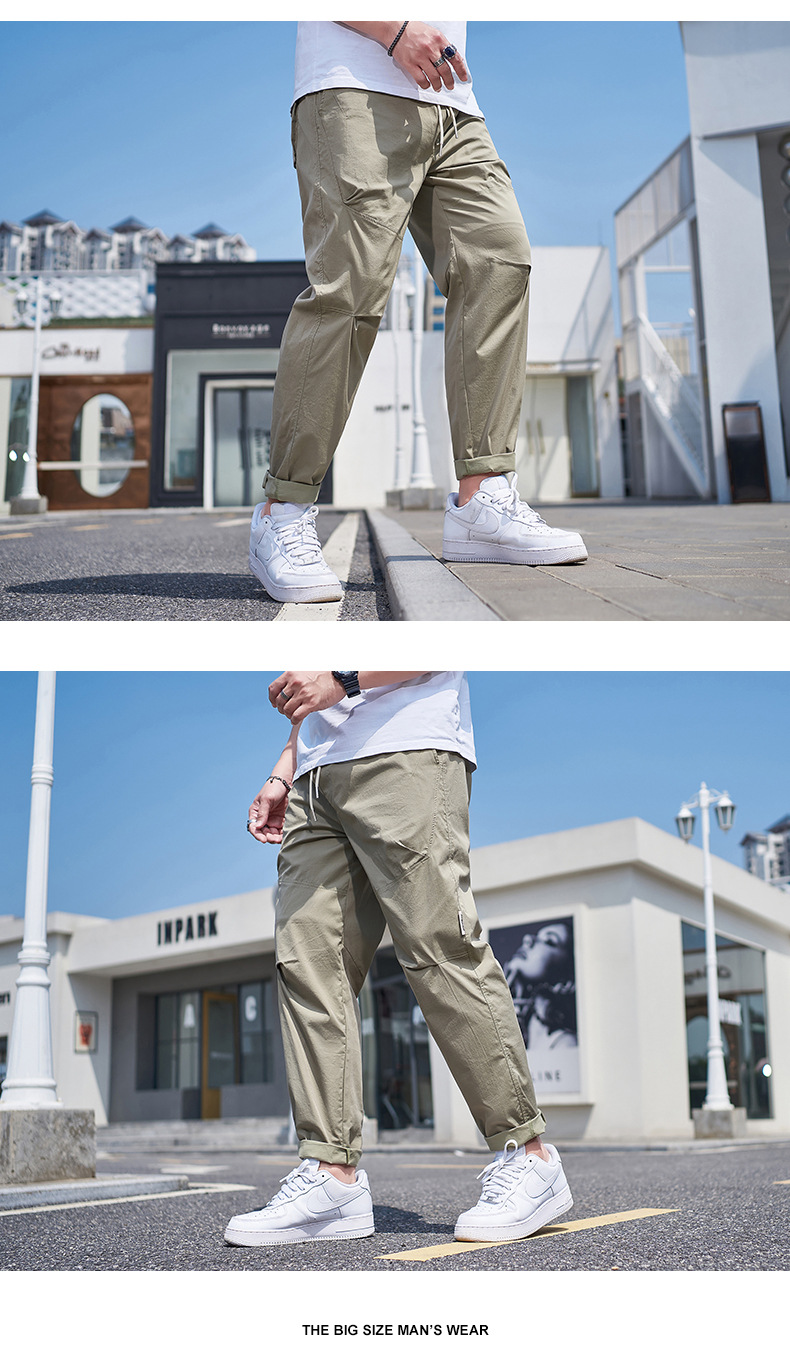 K3043 | Пригородные тонкие комбинезоны летние новые Джаггер парча хлопок чистый цвет сужающиеся прямые трубки свободные брюки мужчины