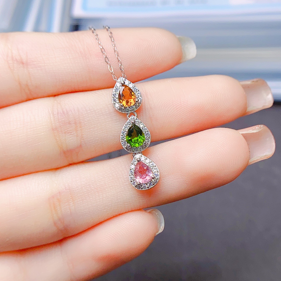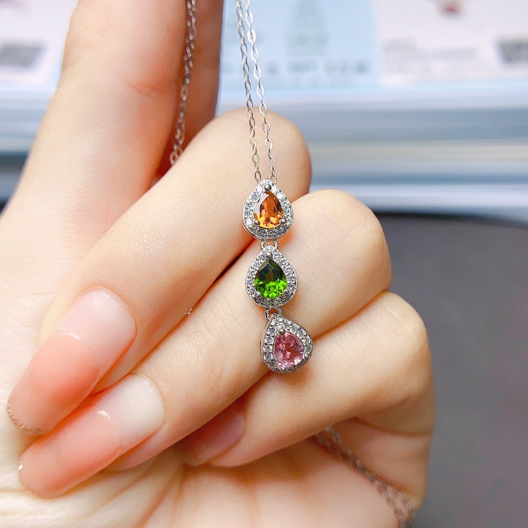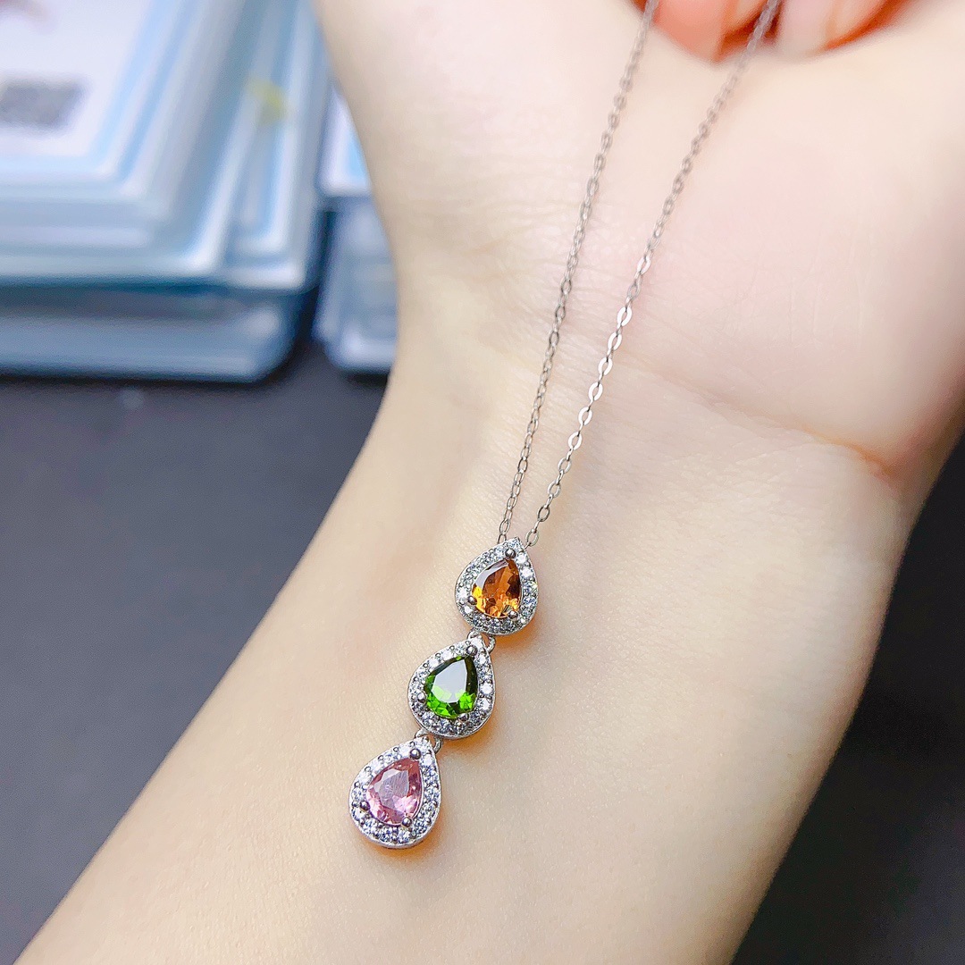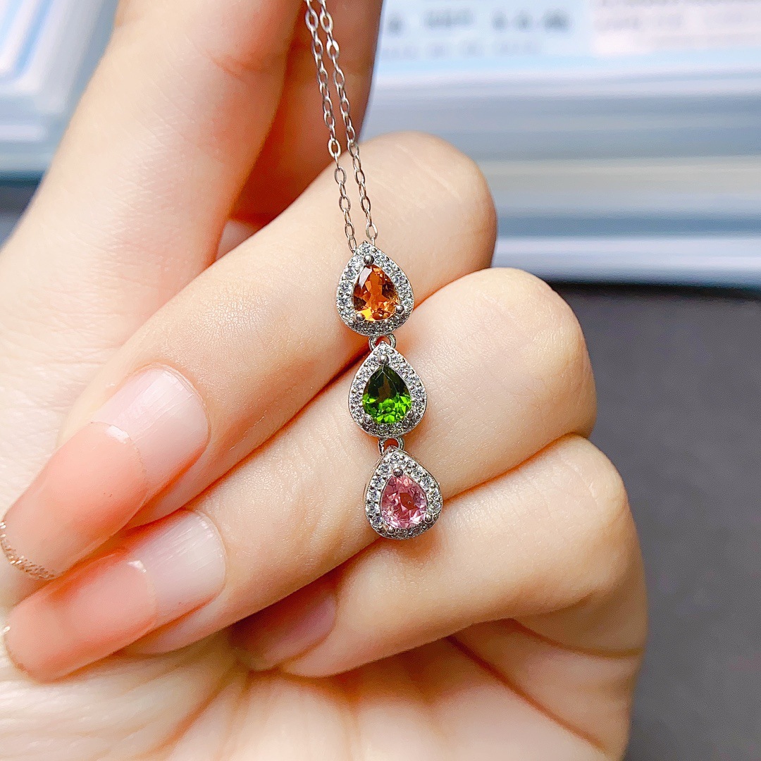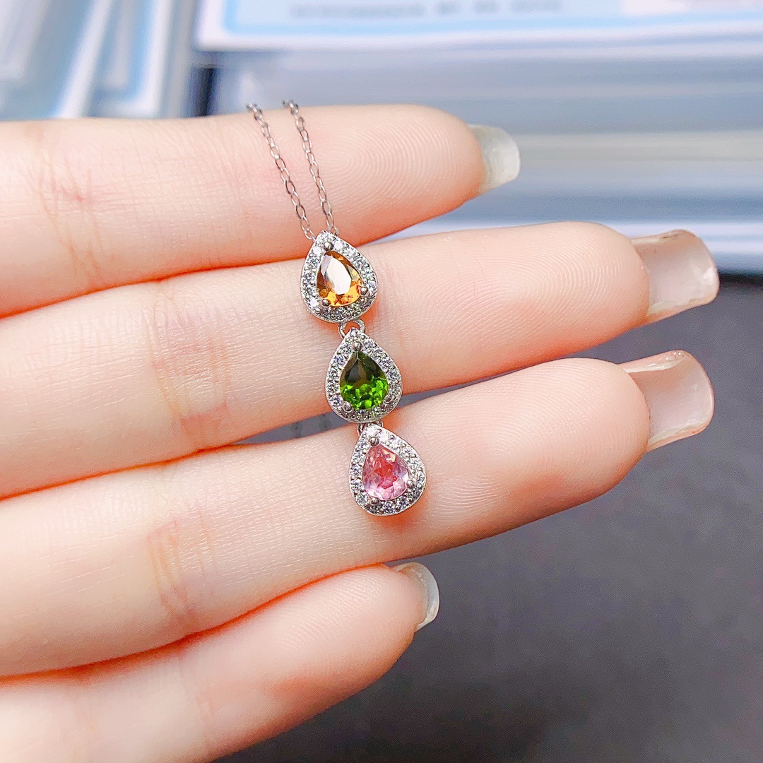 Оптовая продажа фабрики взрывы натурального турмалина кулон S925 серебро инкрустированный Главный камень 4*5 продажи Европы и США поколение волос