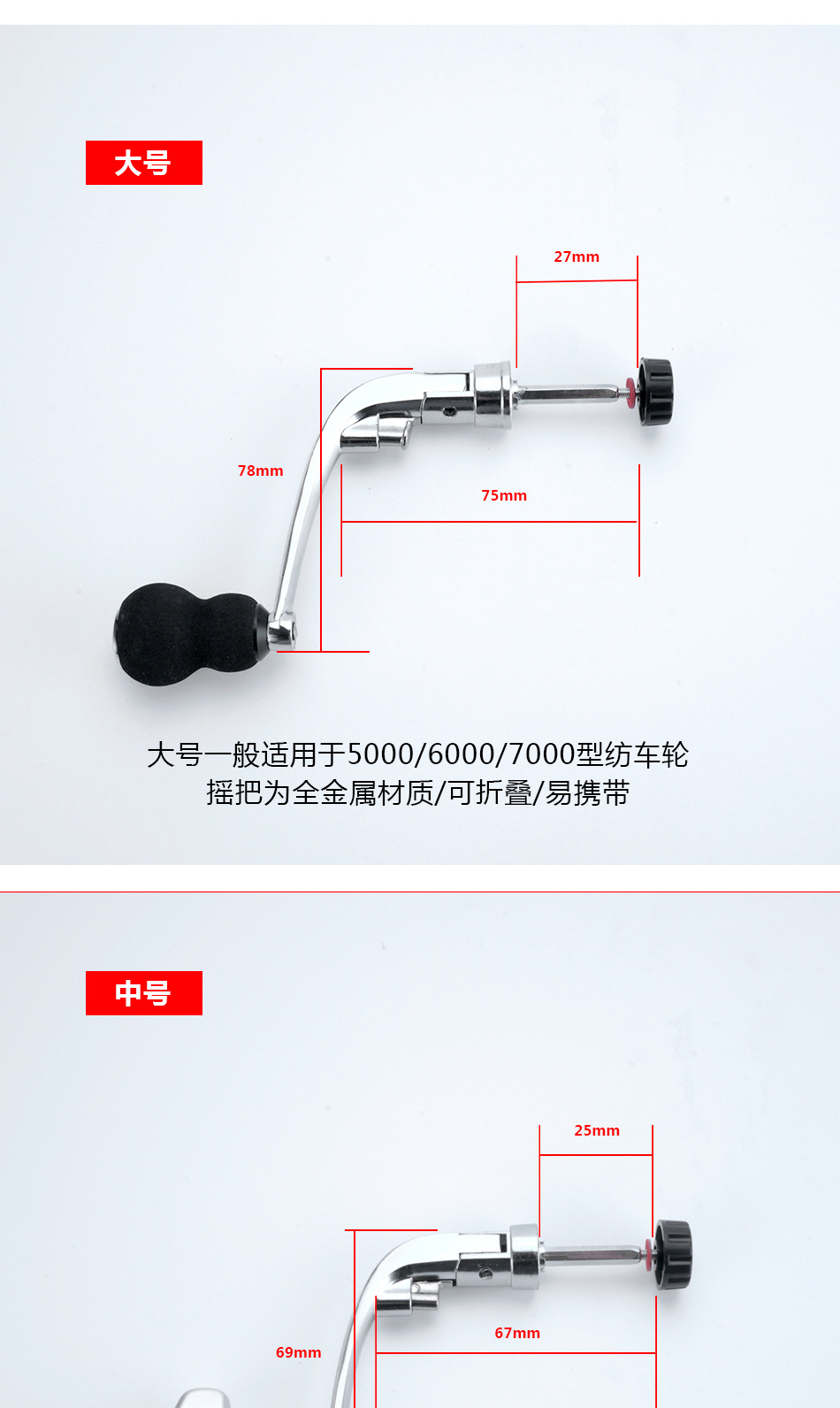 全金属可折叠摇臂:摇臂盖和握丸是塑料的,主体是金属。
