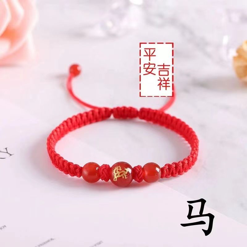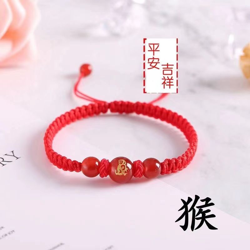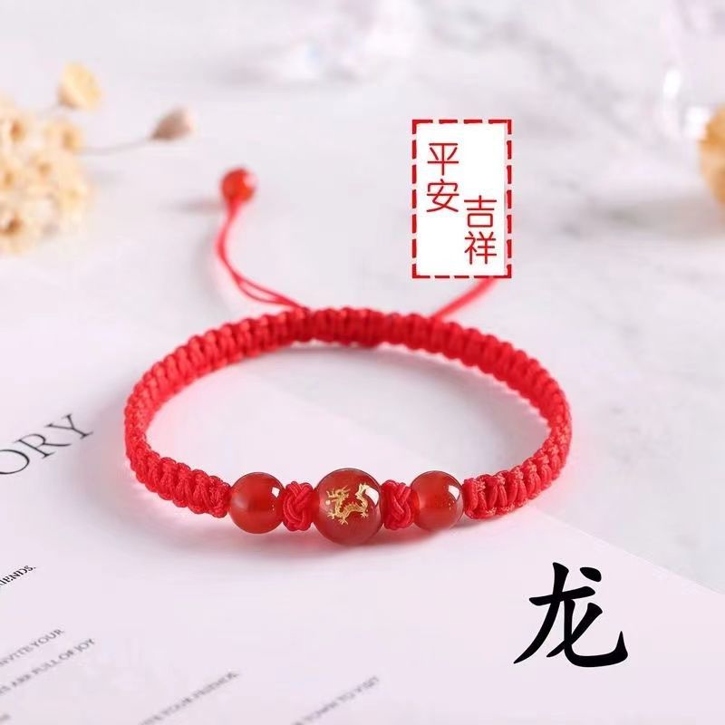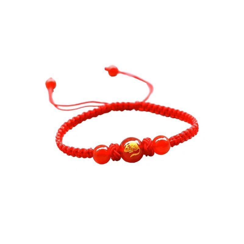 Натуральный красный агат, мужской и женский браслет с двенадцатью зодиаками, красная веревка ручной работы, безопасные Простые Модные украшения оптом