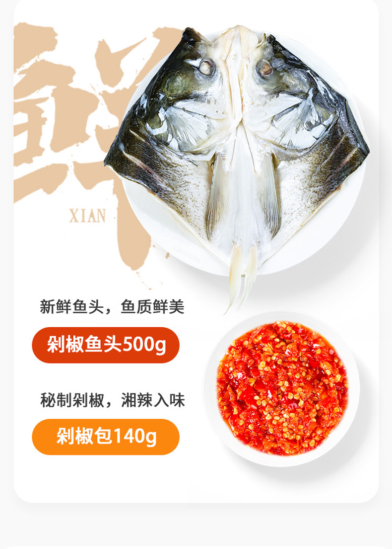 Замороженная рыбная полуфабрикатная продукция Mr. Xiang: Рыбные головы с нарезанным перцем чили, 640 г, в пакетах, для коммерческого использования, готовое блюдо для быстрого приготовления на пару, целая коробка