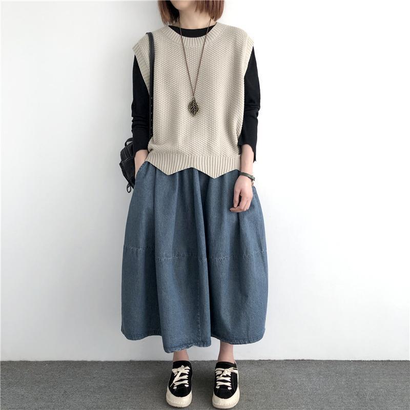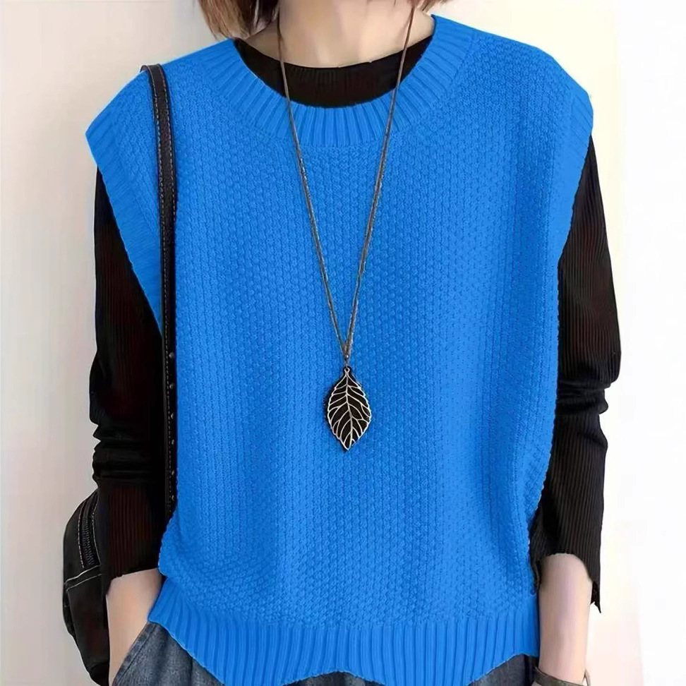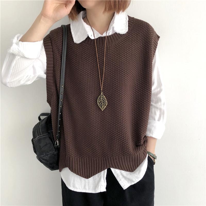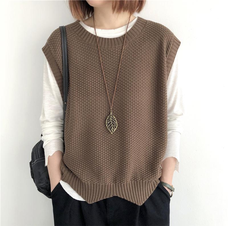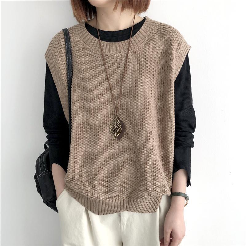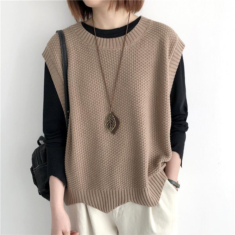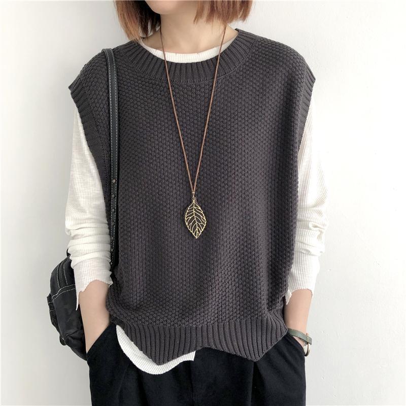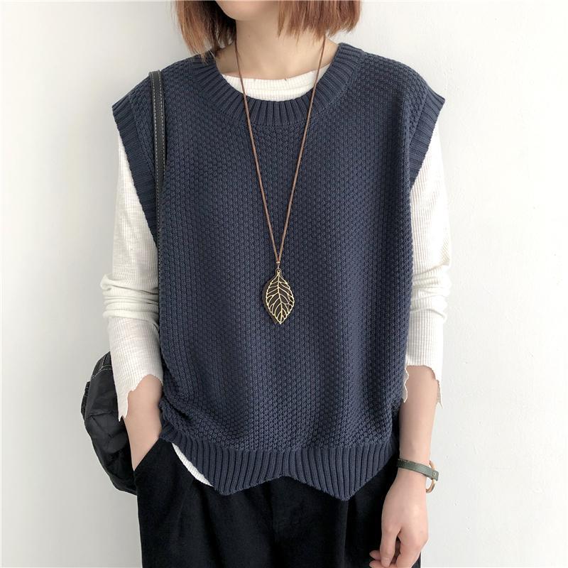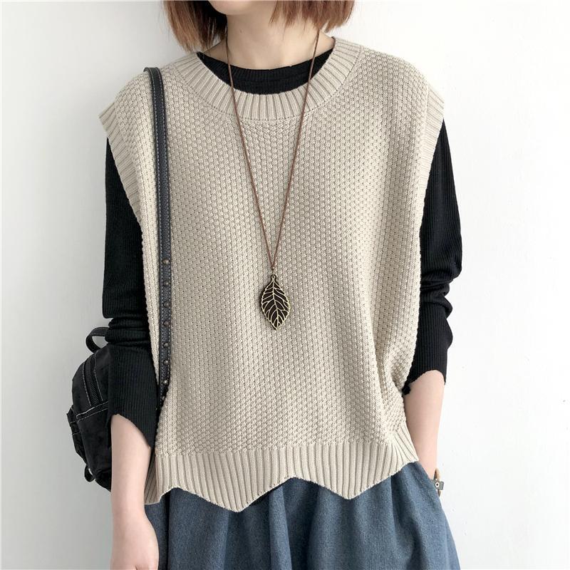 Женский вязаный жилет в стиле ретро, весна-осень 2026, новинка, однотонный, свободный крой, круглый вырез, асимметричный пуловер-жилет, верхняя одежда